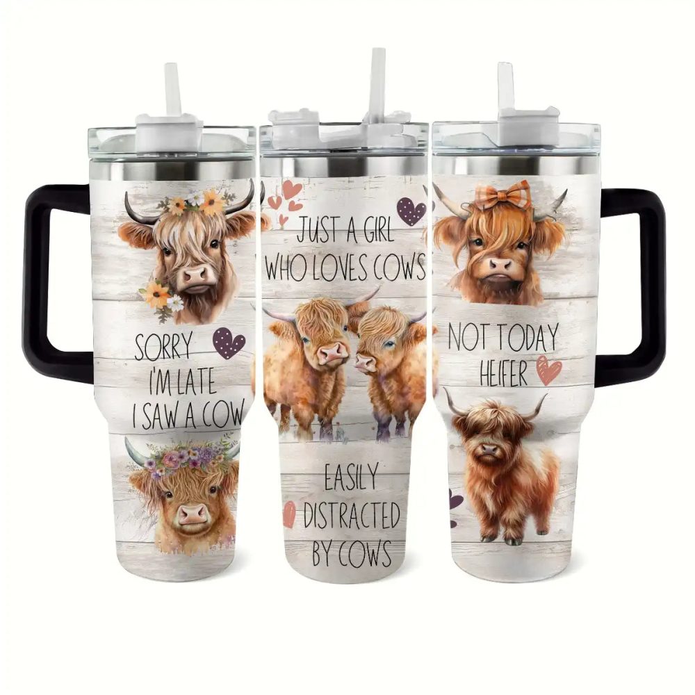 Cow Heifer Custom Stanley Quencher 40Oz Stainless Steel Tumbler With Handle
