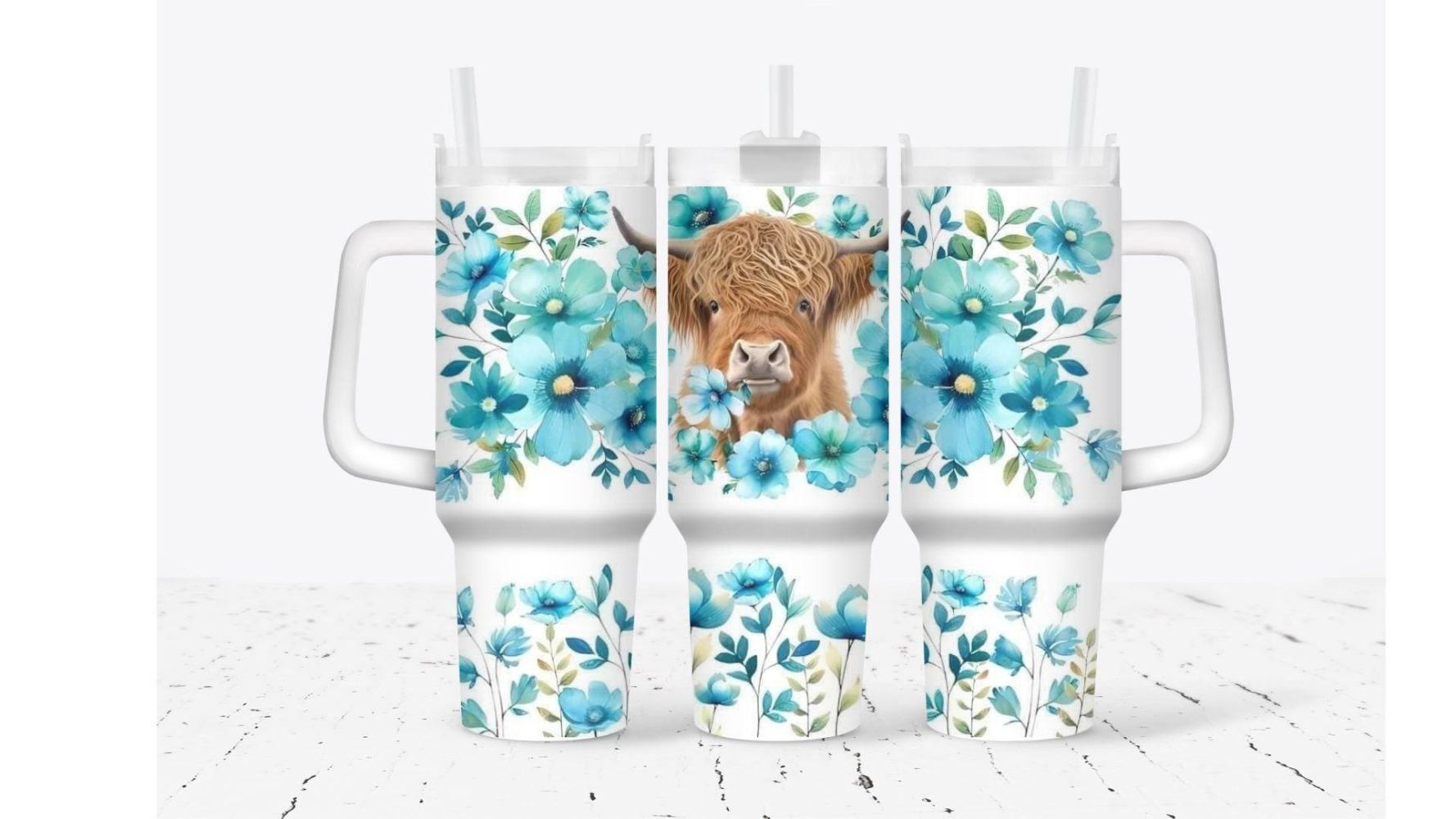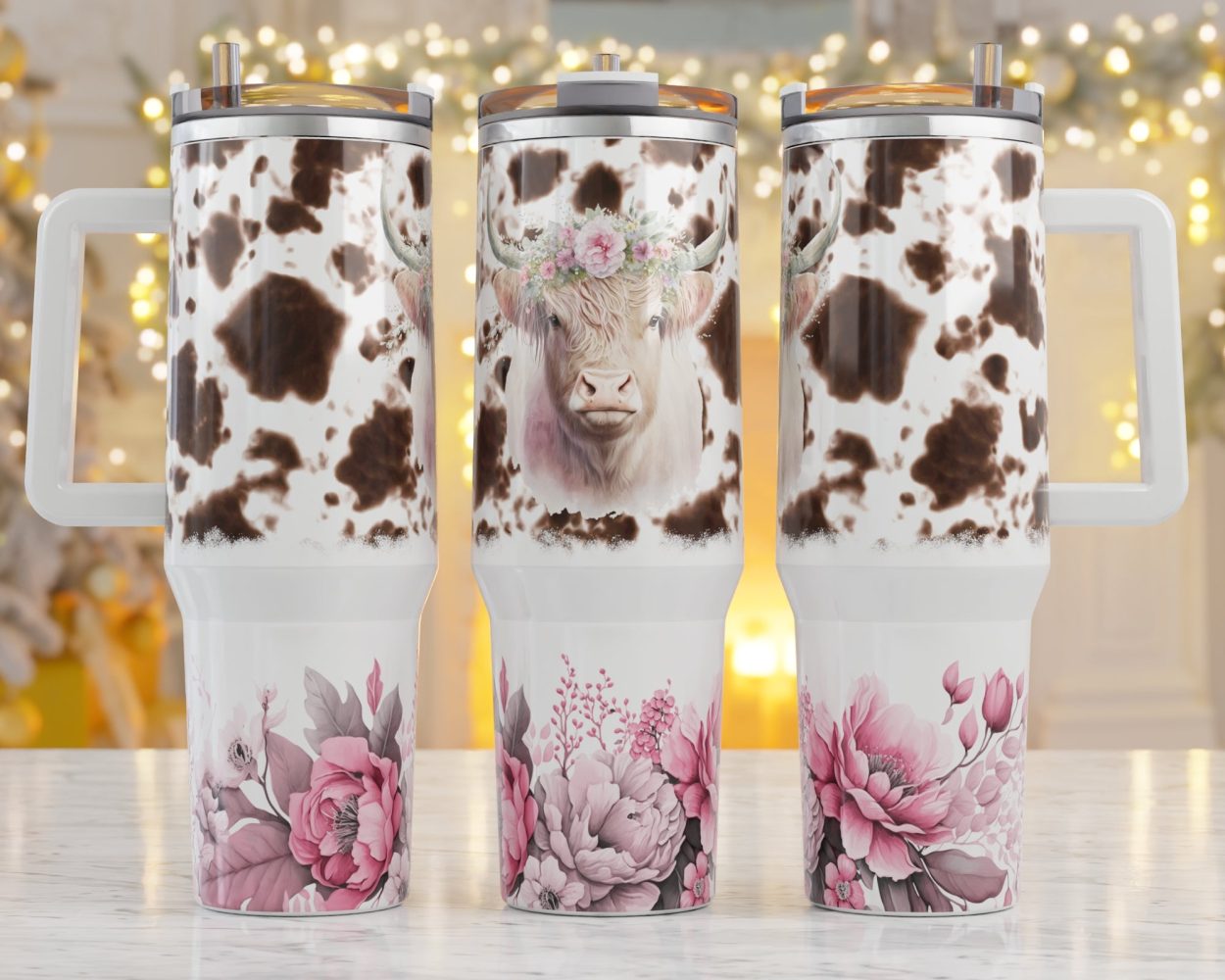 Cow With Flowers Custom Stanley Quencher 40Oz Stainless Steel Tumbler With Handle