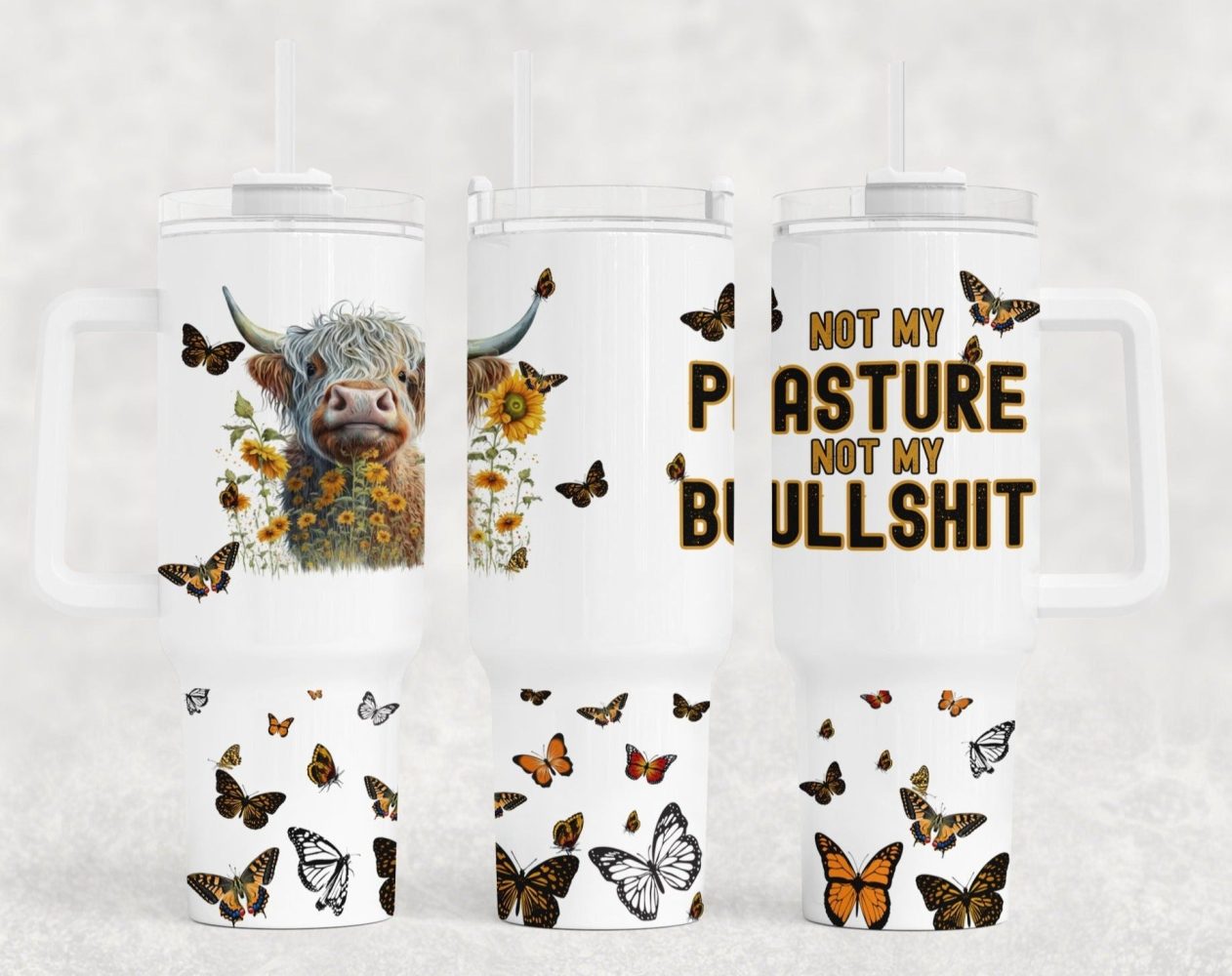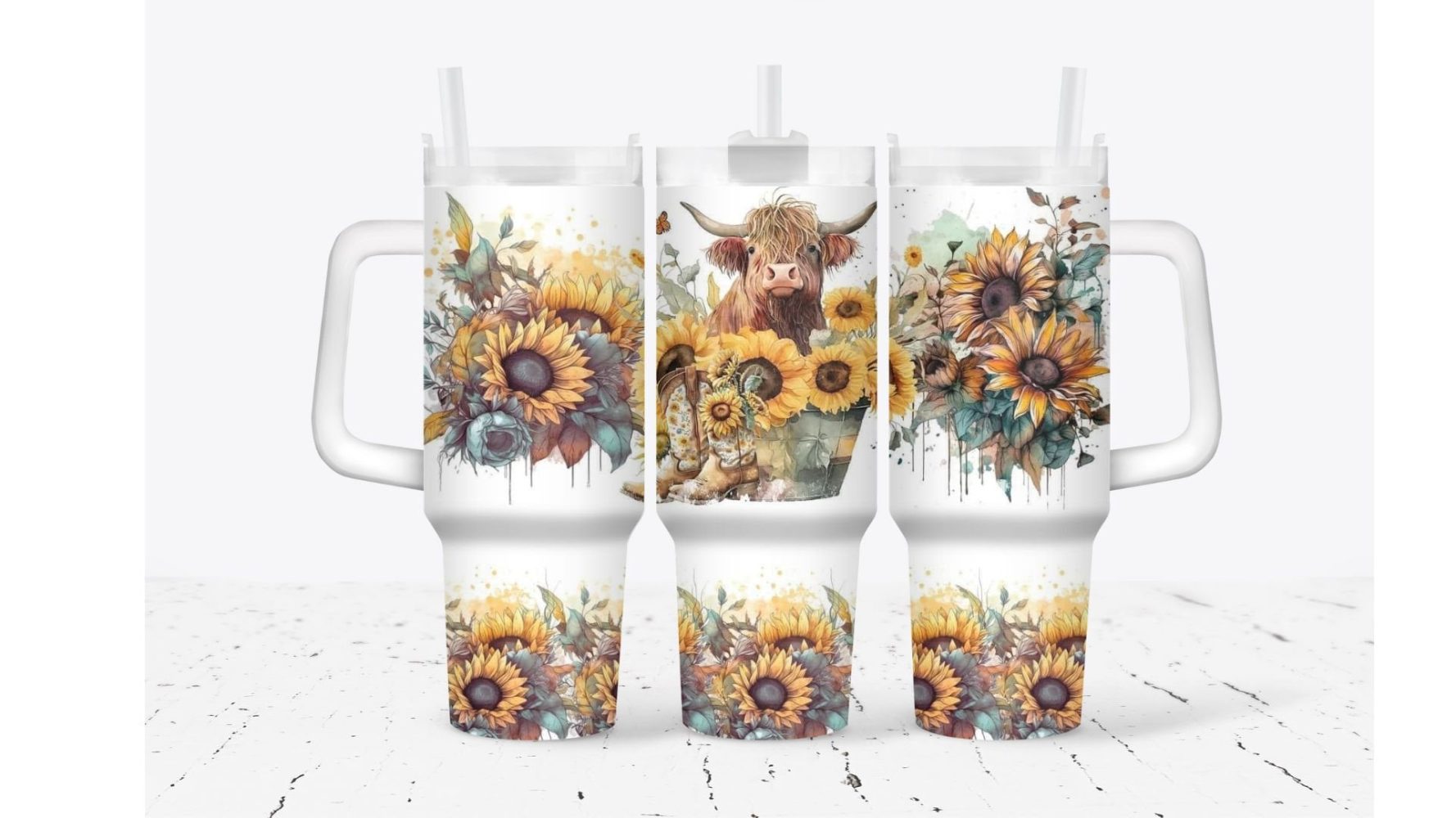 Cow With Sunflowers Custom Stanley Quencher 40Oz Stainless Steel Tumbler With Handle