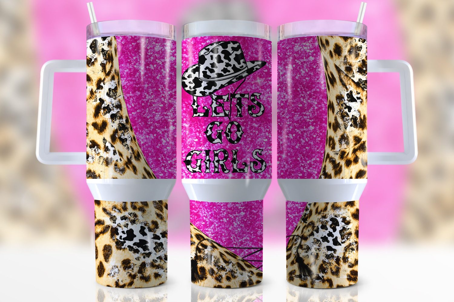 Cowgirl Glitter Leopard Print Custom Stanley Quencher 40Oz Stainless Steel Tumbler With Handle