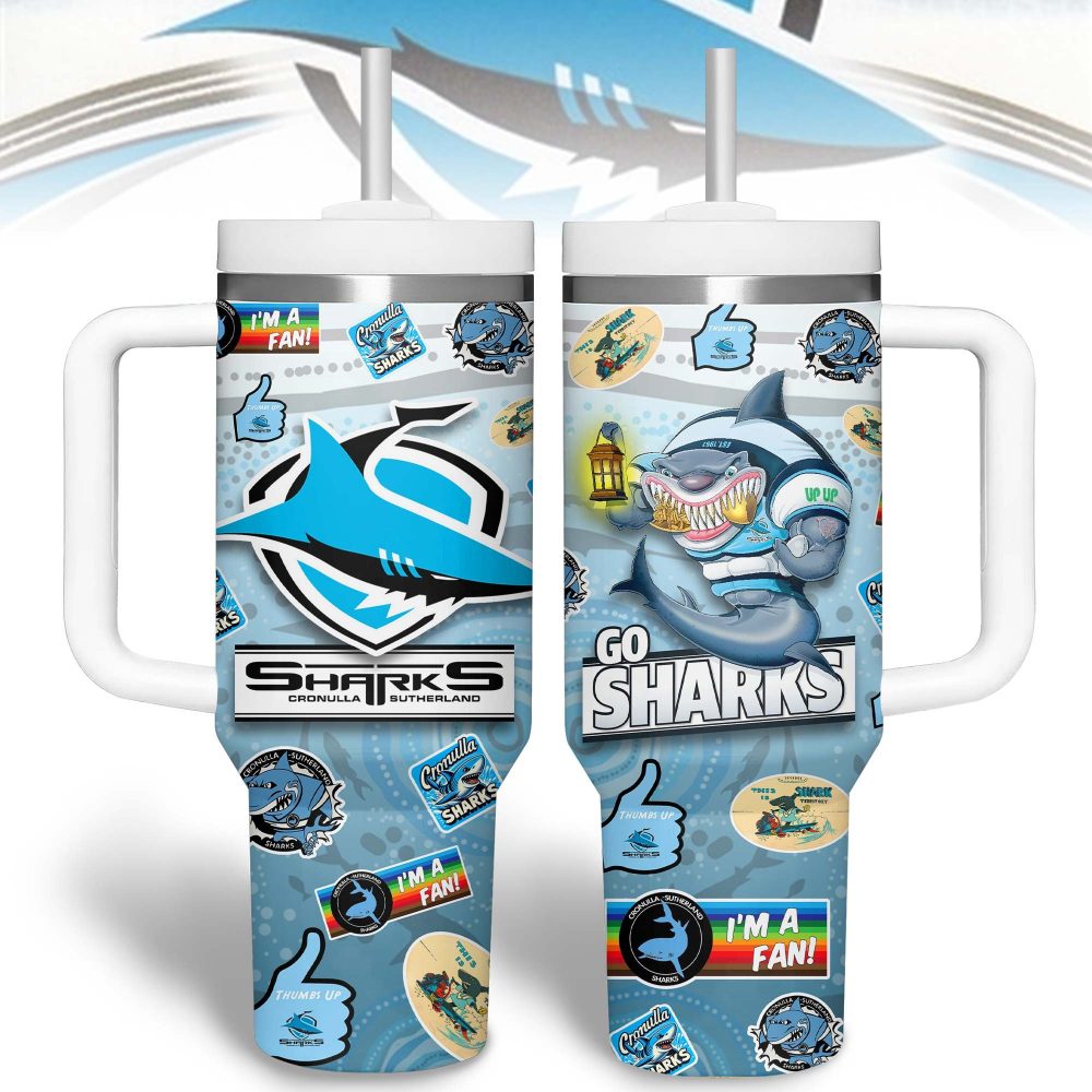 Cronulla-Sutherland Sharks Nrl Custom Stanley Quencher 40Oz Stainless Steel Tumbler