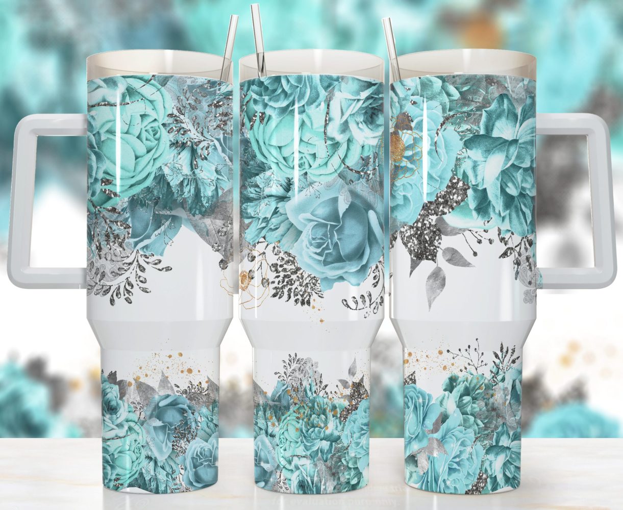 Crystal Floral Custom Stanley Quencher 40Oz Stainless Steel Tumbler With Handle