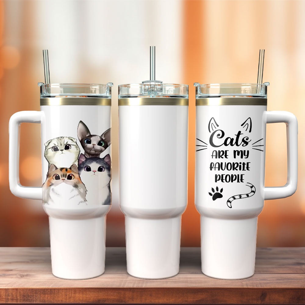 Cutie Cats Are My Favorite People Animal Custom Stanley Quencher 40Oz Stainless Steel Tumbler With Handle