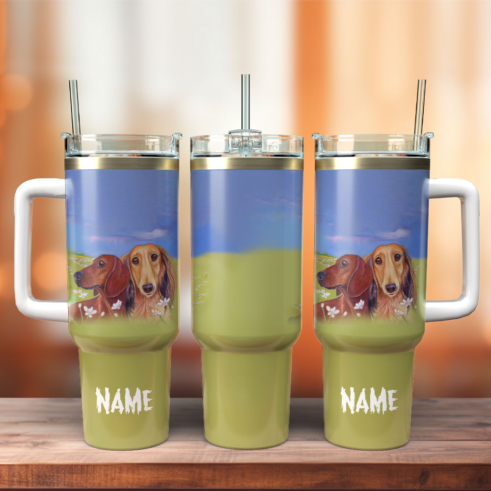 Dachshund Dog Custom Stanley Quencher 40Oz Stainless Steel Tumbler With Handle