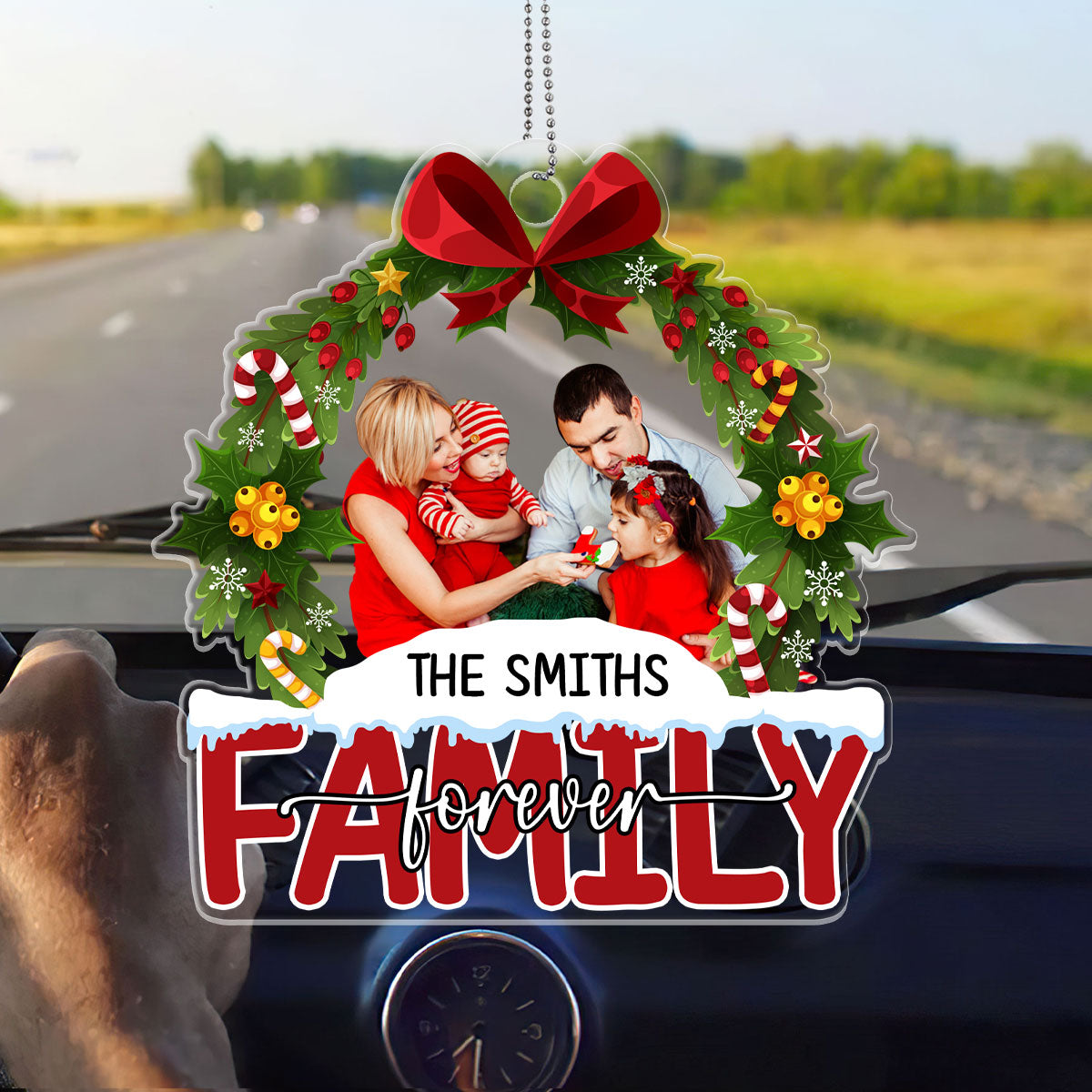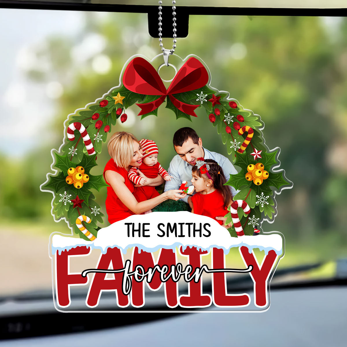 Christmas Wreath Family Forever Personalized Car Hanging Ornament