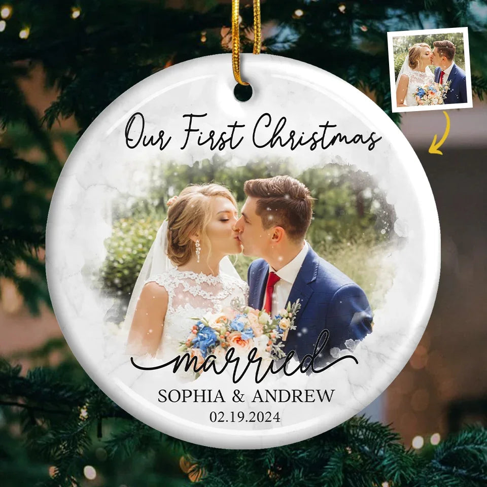 Custom Photo Couple Music Lover Gift for Couples Wedding Personalized Glass Ornament