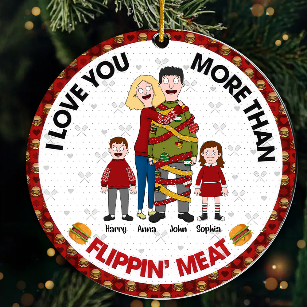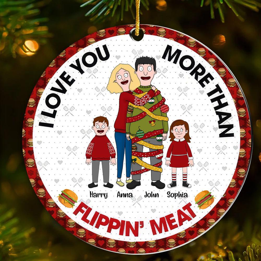Burgers Family I Love You More Than Flippin’ Meat Personalized Acrylic Ornament Gift For Christmas