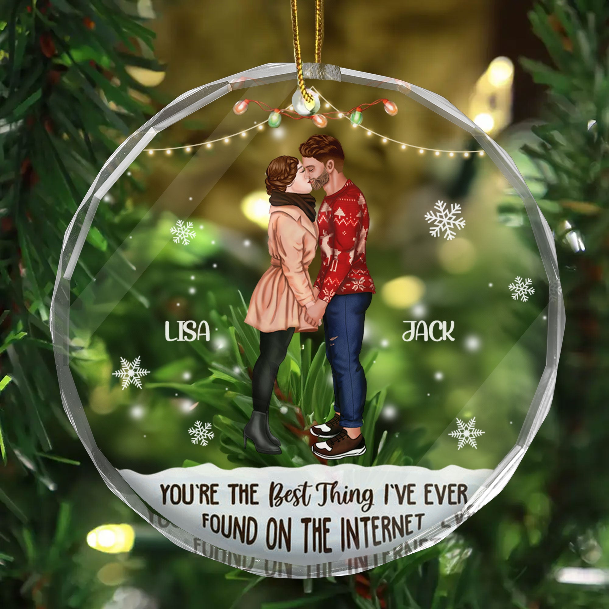You Are The Best Thing Found On The Internet Gift for Couples Wedding Personalized Glass Ornament