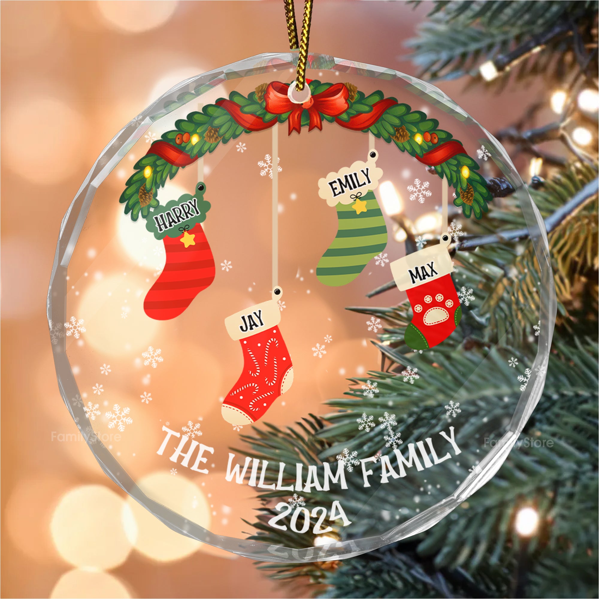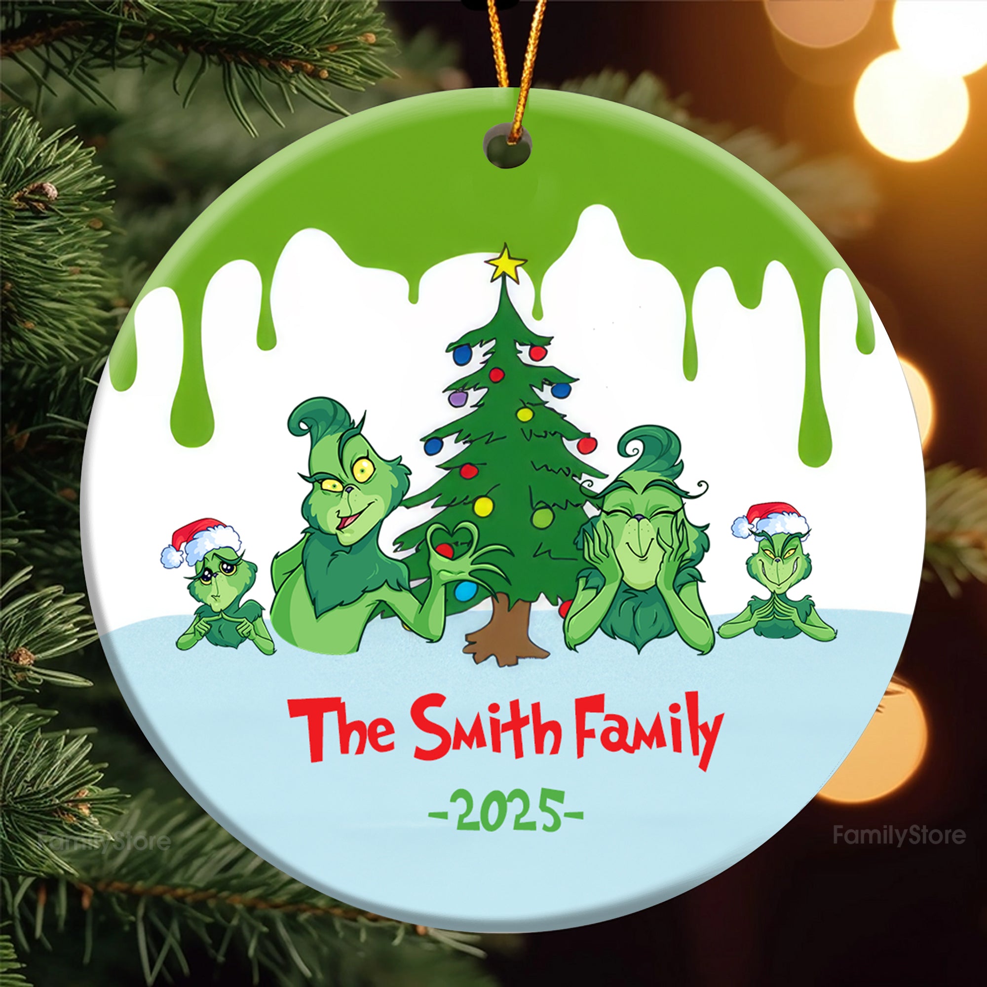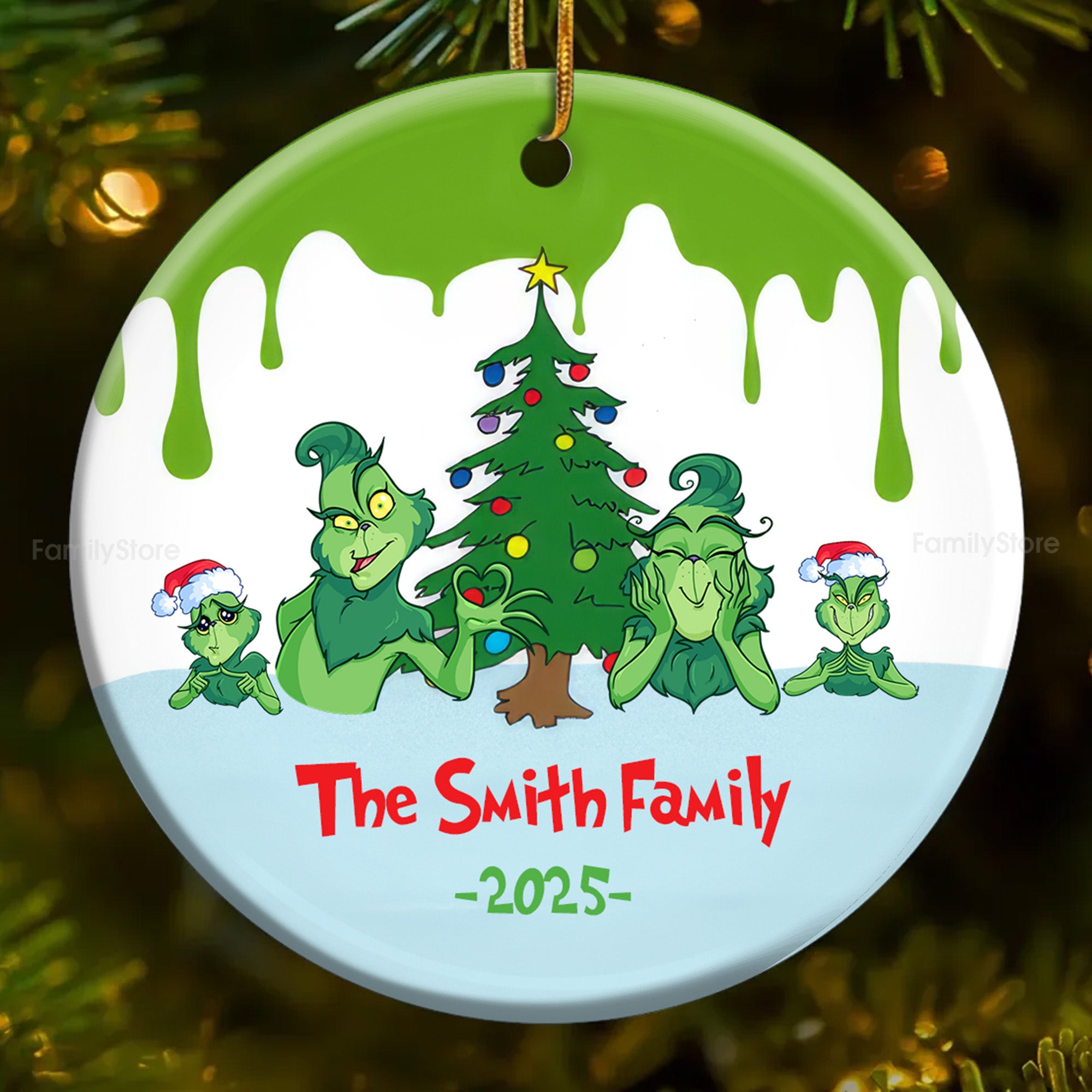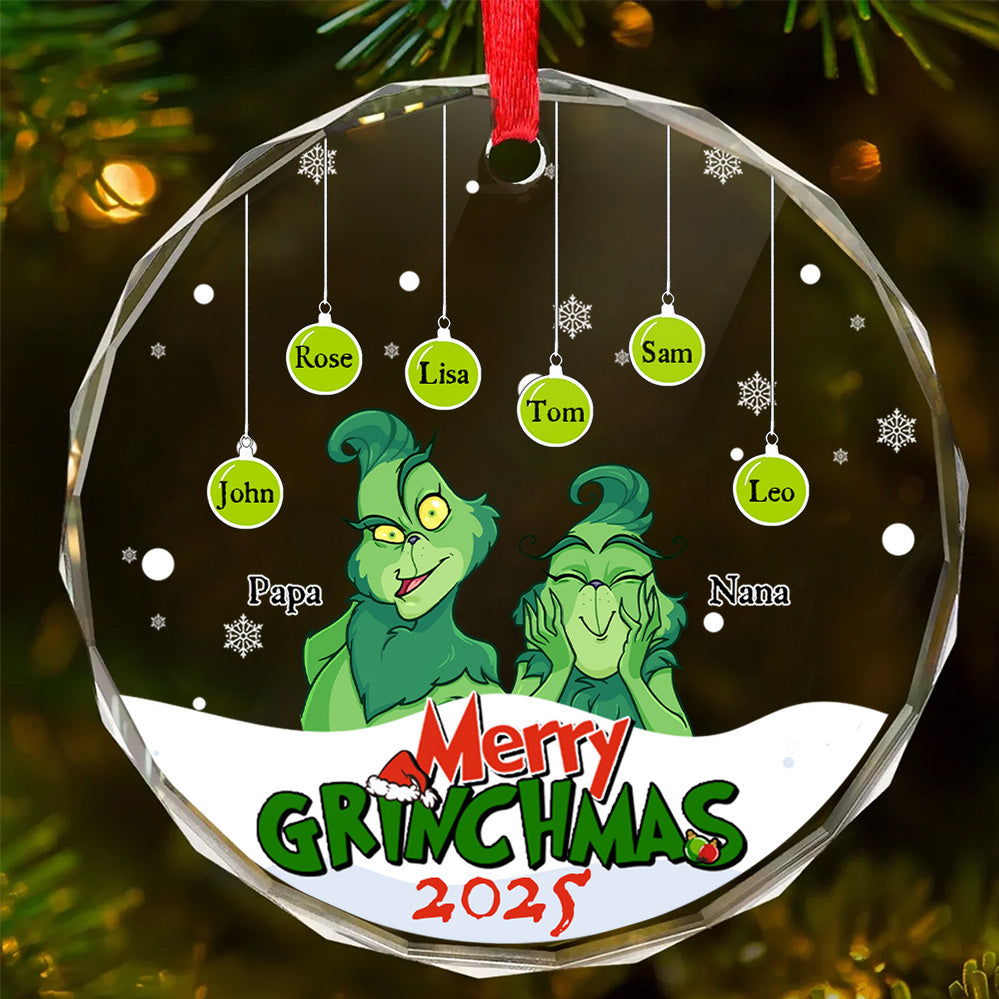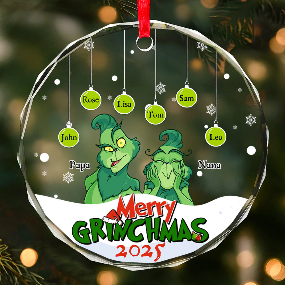 Christmas With Us The Family Or Green Monster Gift For Family Personalized Glass Ornament