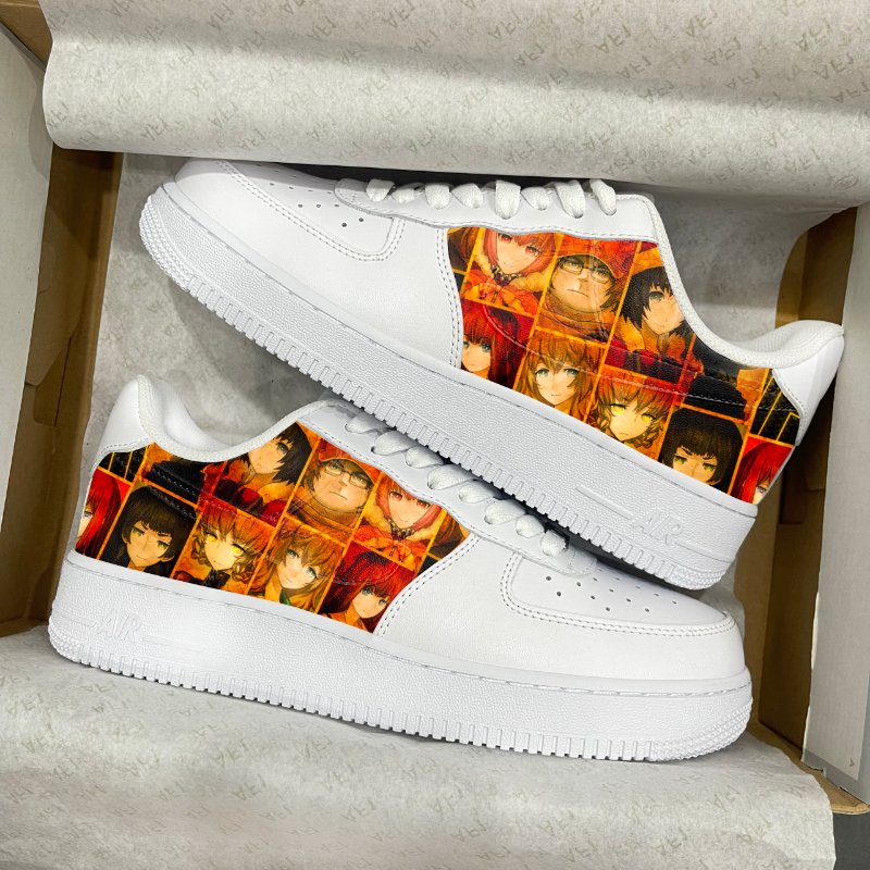 Anime Steins;Gate Air Force 1 Custom Printed Shoes Makise Kurisu And Okabe Rintaro And Shiina Mayuri