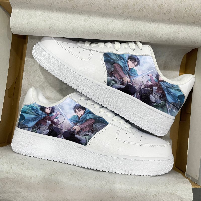 Attack On Titan Air Force 1 Custom Printed Shoes Levi Ackerman And Attack On Titan Maga And Mikasa