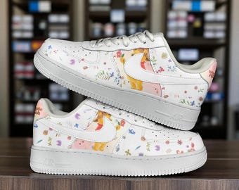 Disney Winnie The Pooh Adult Air Force 1 Custom Pooh Bear Floral Flower Printed Shoes