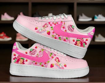 Strawberry Cartoon Character Shoes Custom Printed Pink Adult Air Force 1Perfect Gift For Girls