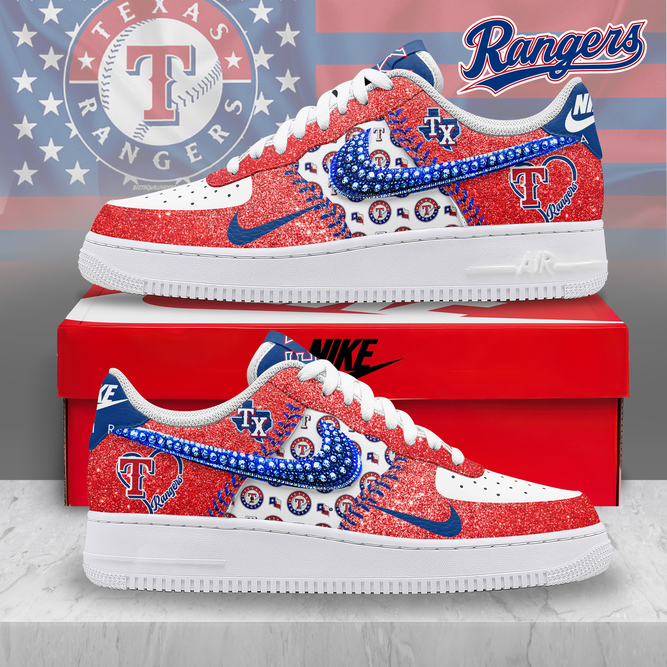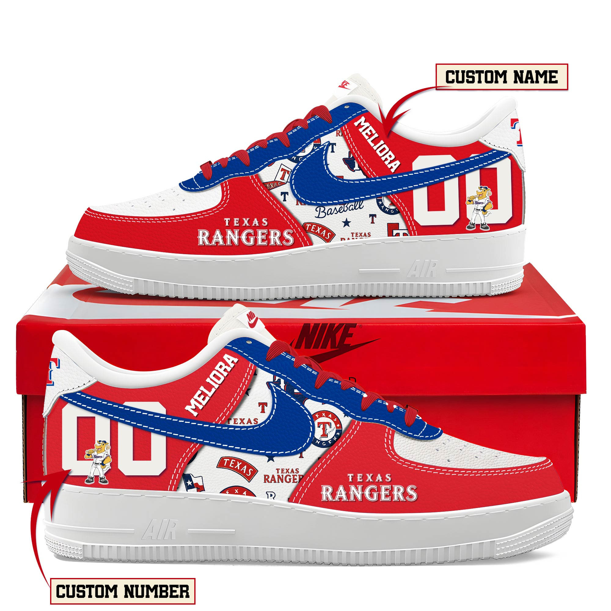 Texas Rangers Air Low-Top Sneakers Shoes Comfortable For Men And Women Printed Full Size