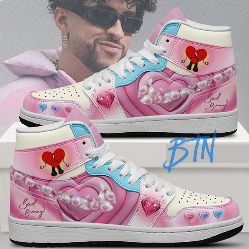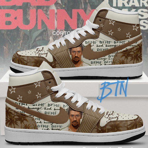 Bad Bunny AJ1 High Sneakers Shoes Printed For Men And Women