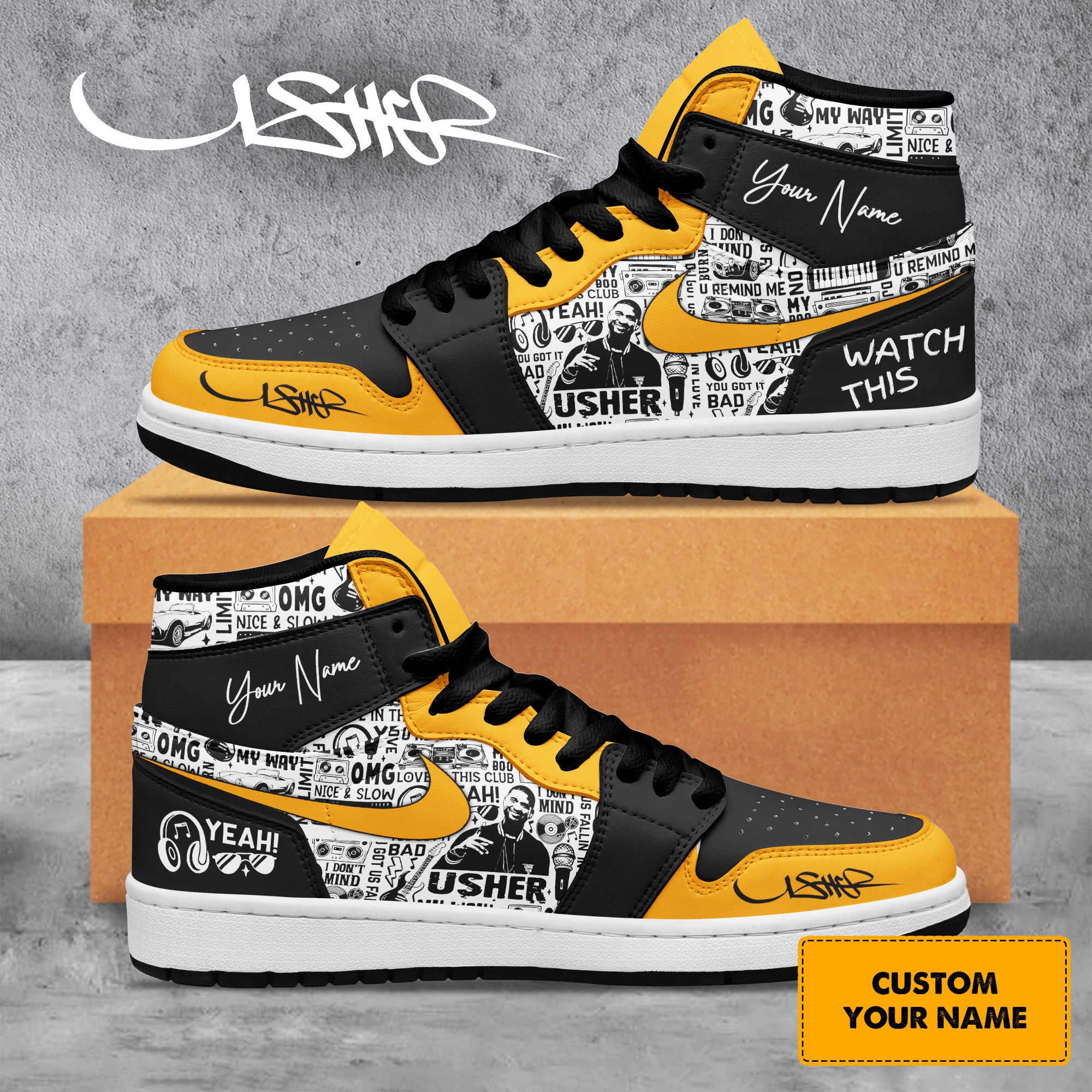 Usher Personalized Music High-Top Sneakers Shoes Custom Name Design For Men And Women