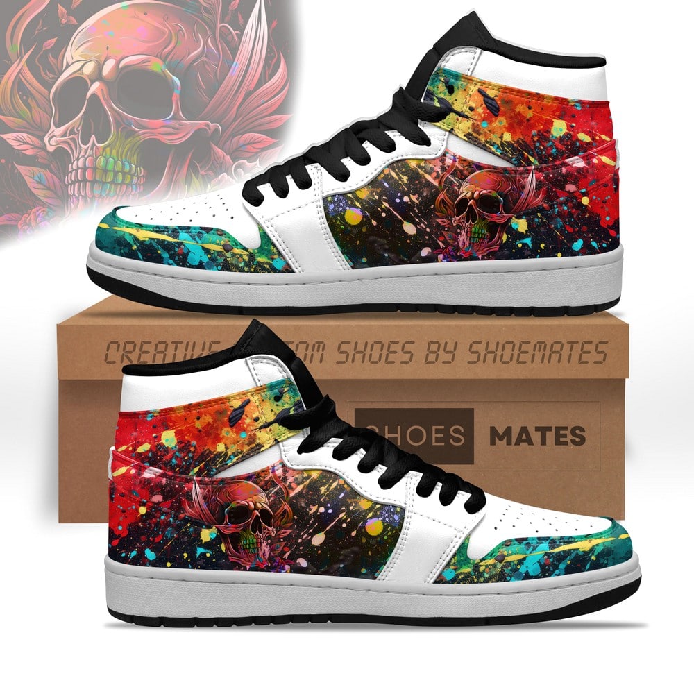 Colorful Skull High-Top Sneakers Retro Streetwear Vibe Shoes For Men And Women