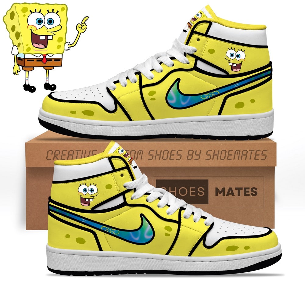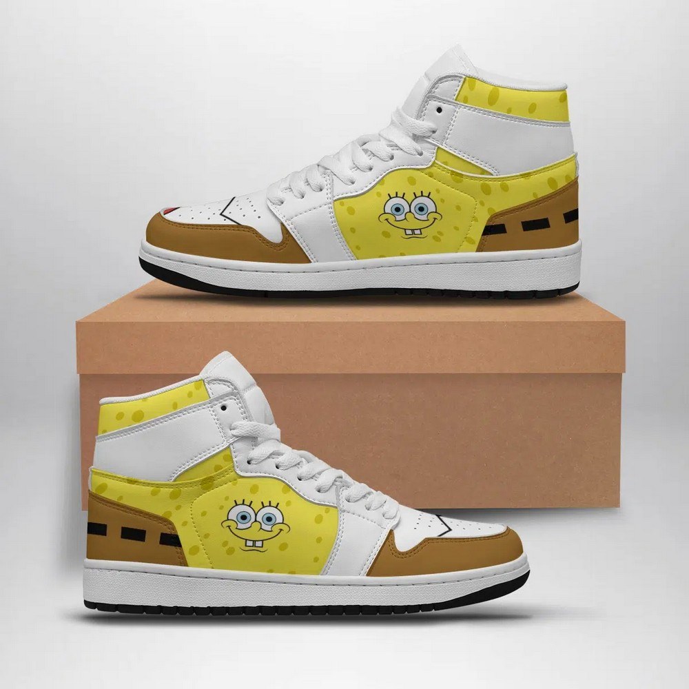 Spongebob Outfit AJ1 High Sneakers Shoes For Men And Women