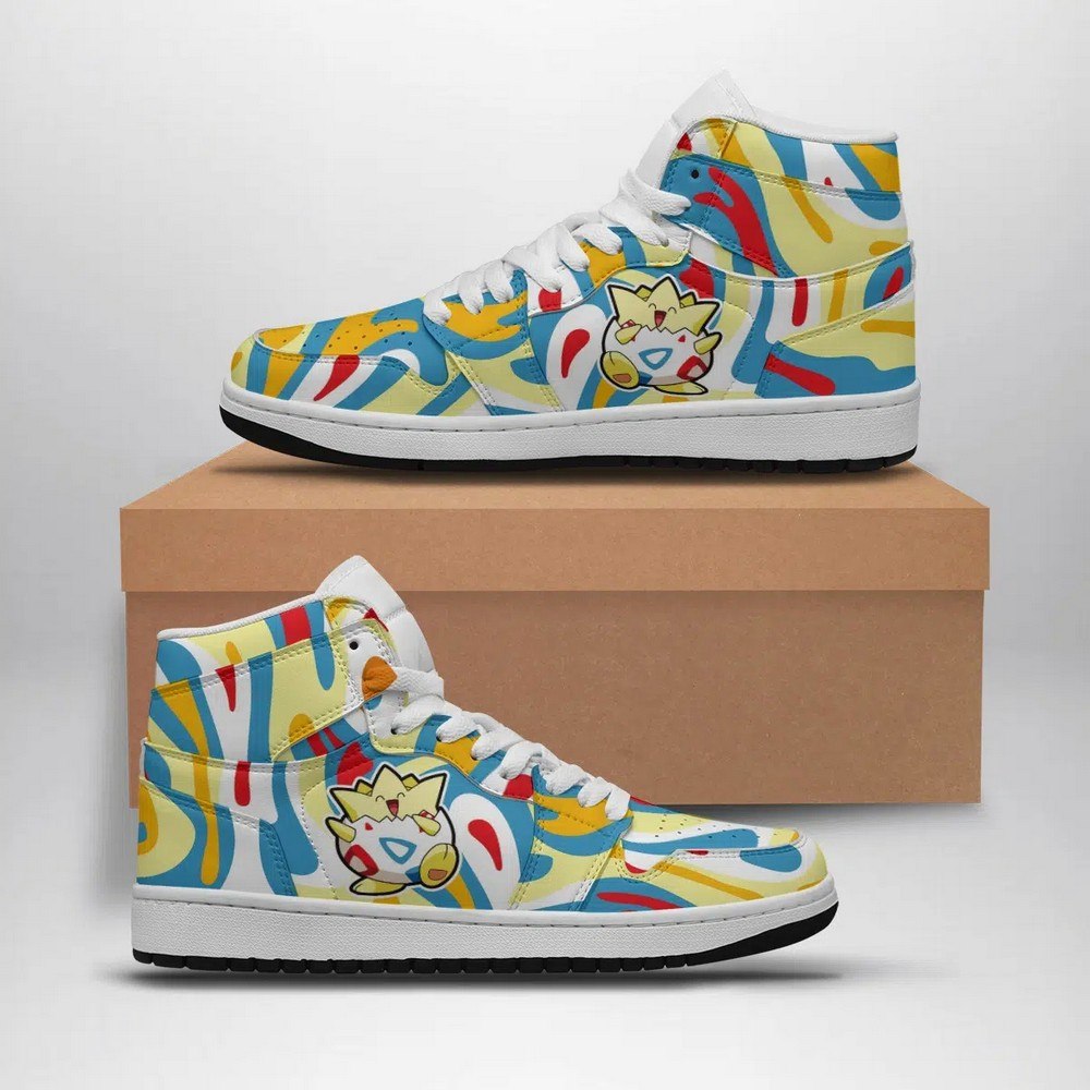 Togepi Trippy Pokemon High-Top Sneakers Retro Streetwear Vibe Shoes For Men And Women