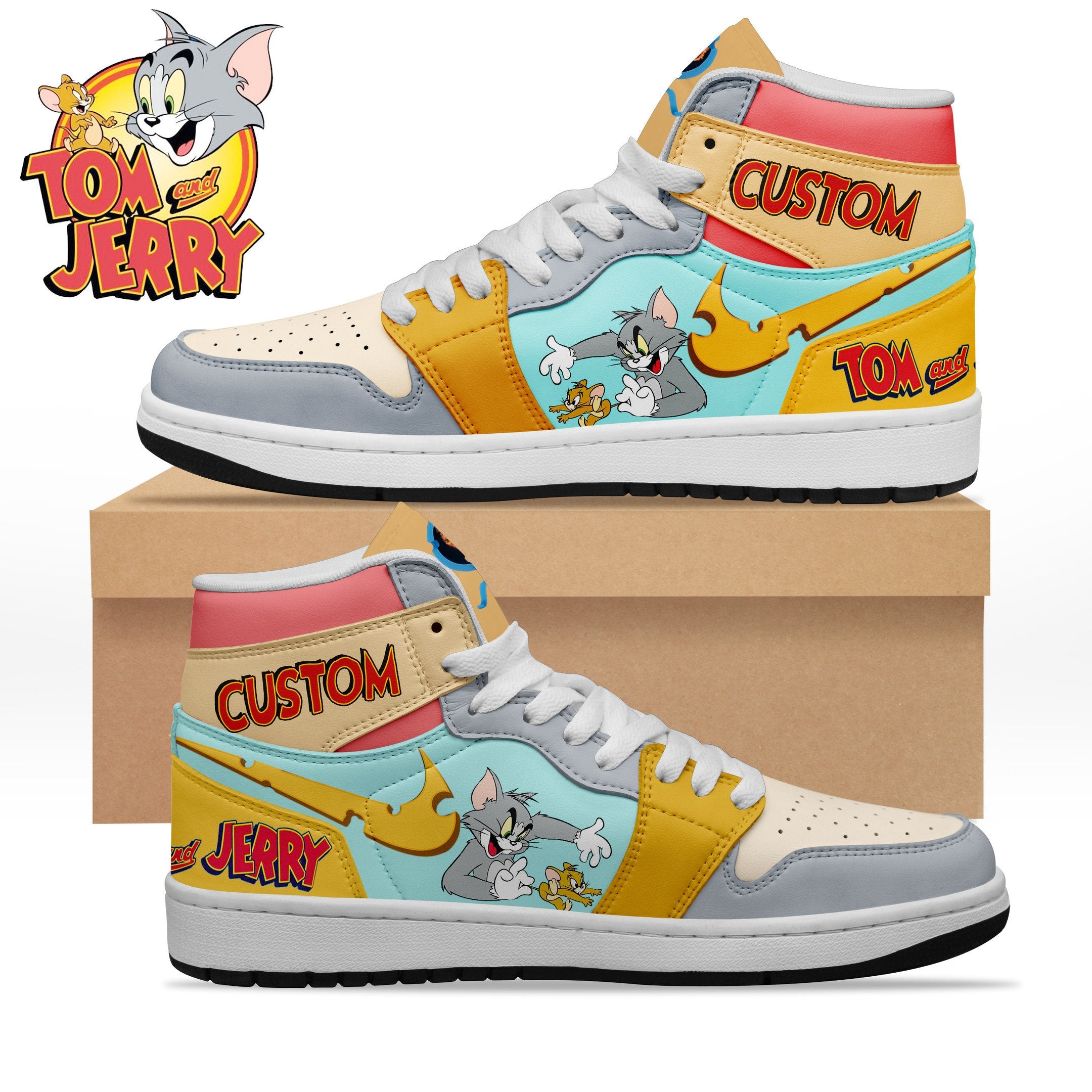Tom Jerry Personalized Cartoon High-Top Sneakers Shoes Custom Name Design For Men And Women