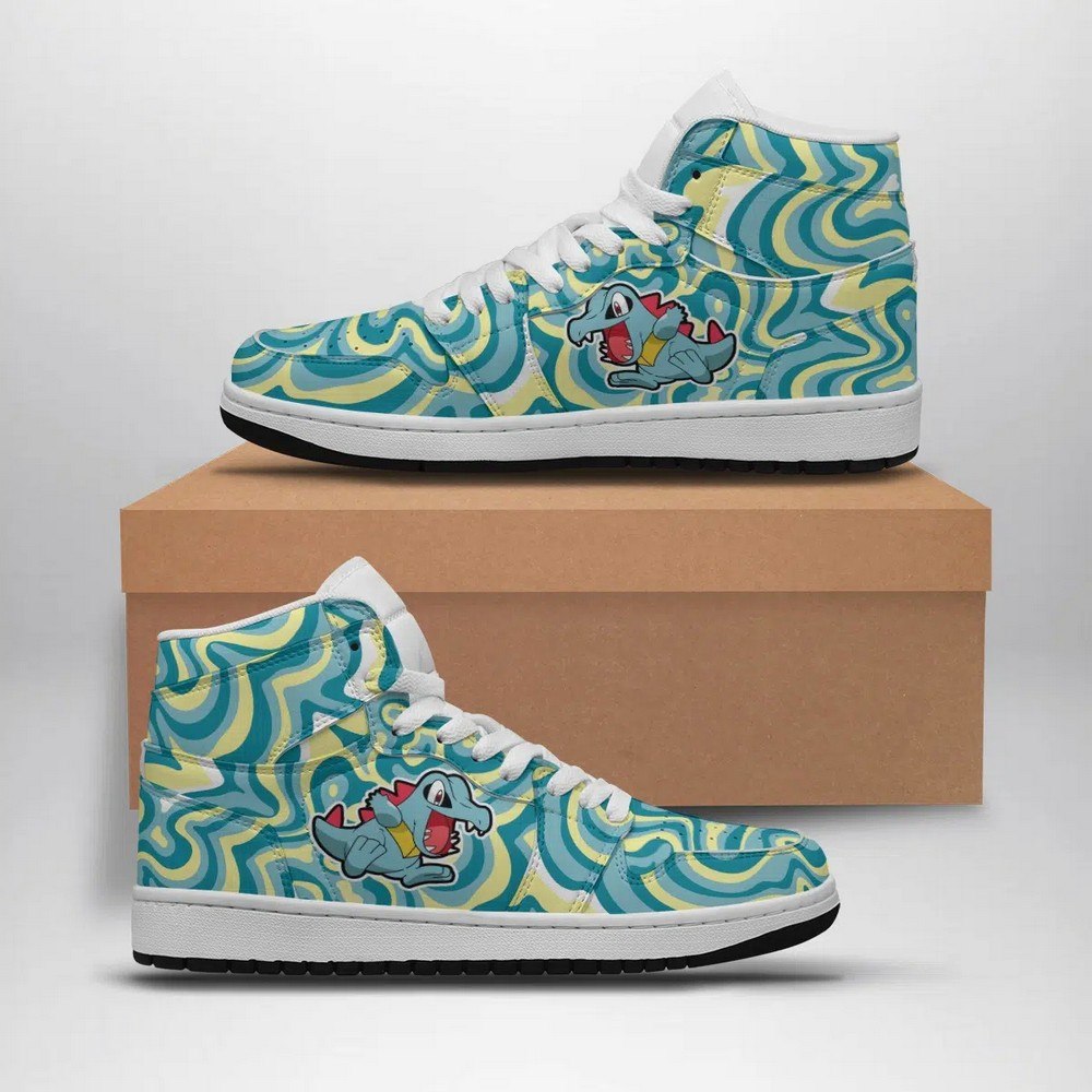 Totodile Trippy Pokemon High-Top Sneakers Retro Streetwear Vibe Shoes For Men And Women