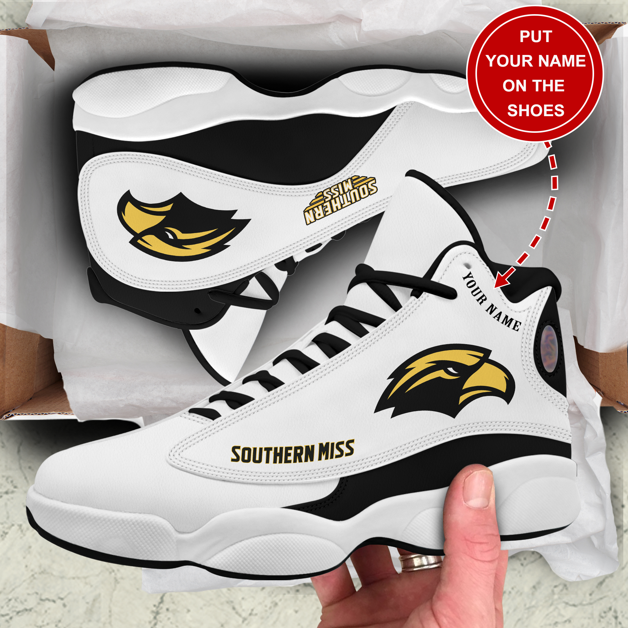 Southern Miss Golden Eagles AJ13 Sneakers Shoes Classic Printed For Men And Women
