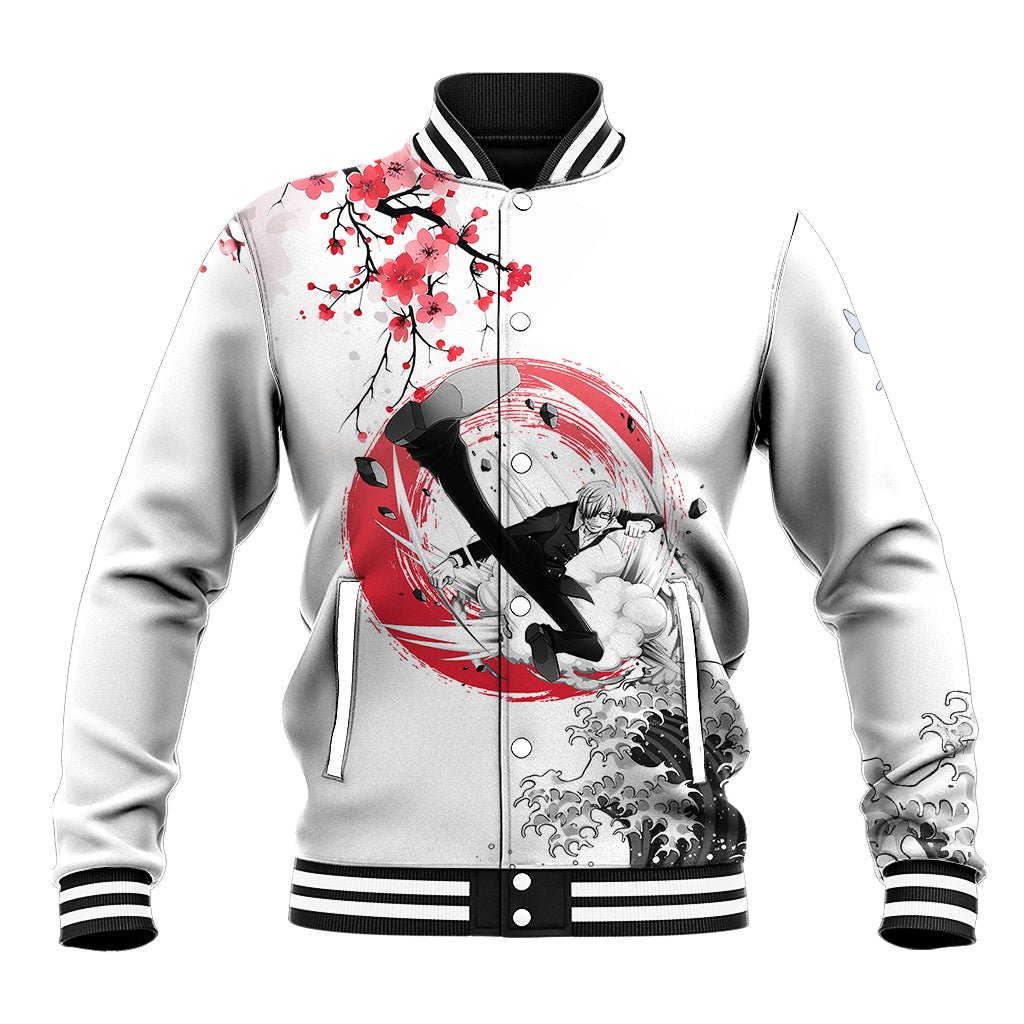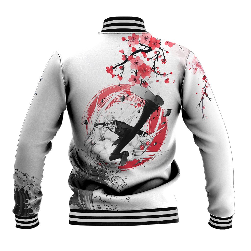 Anime One Piece Sanji Blackleg Anime Varsity Baseball Jacket Painting Style For Fans