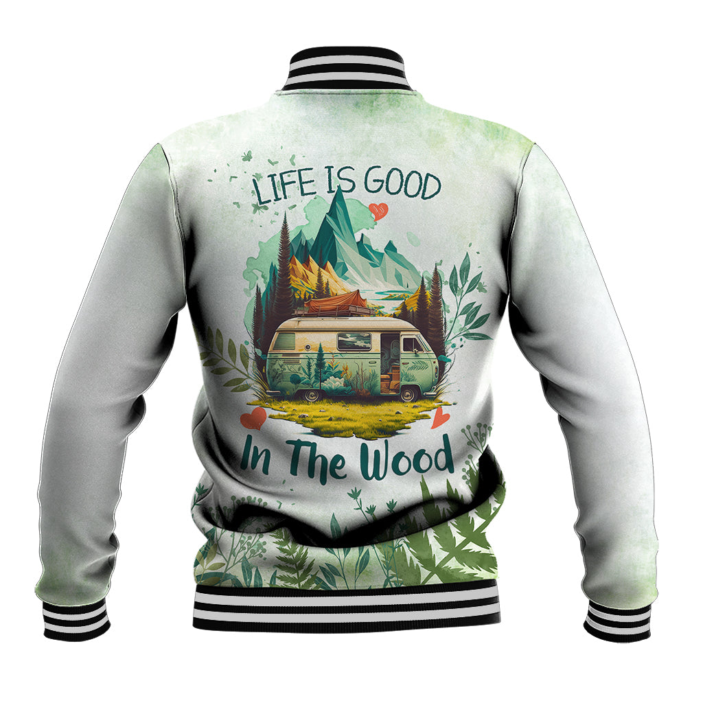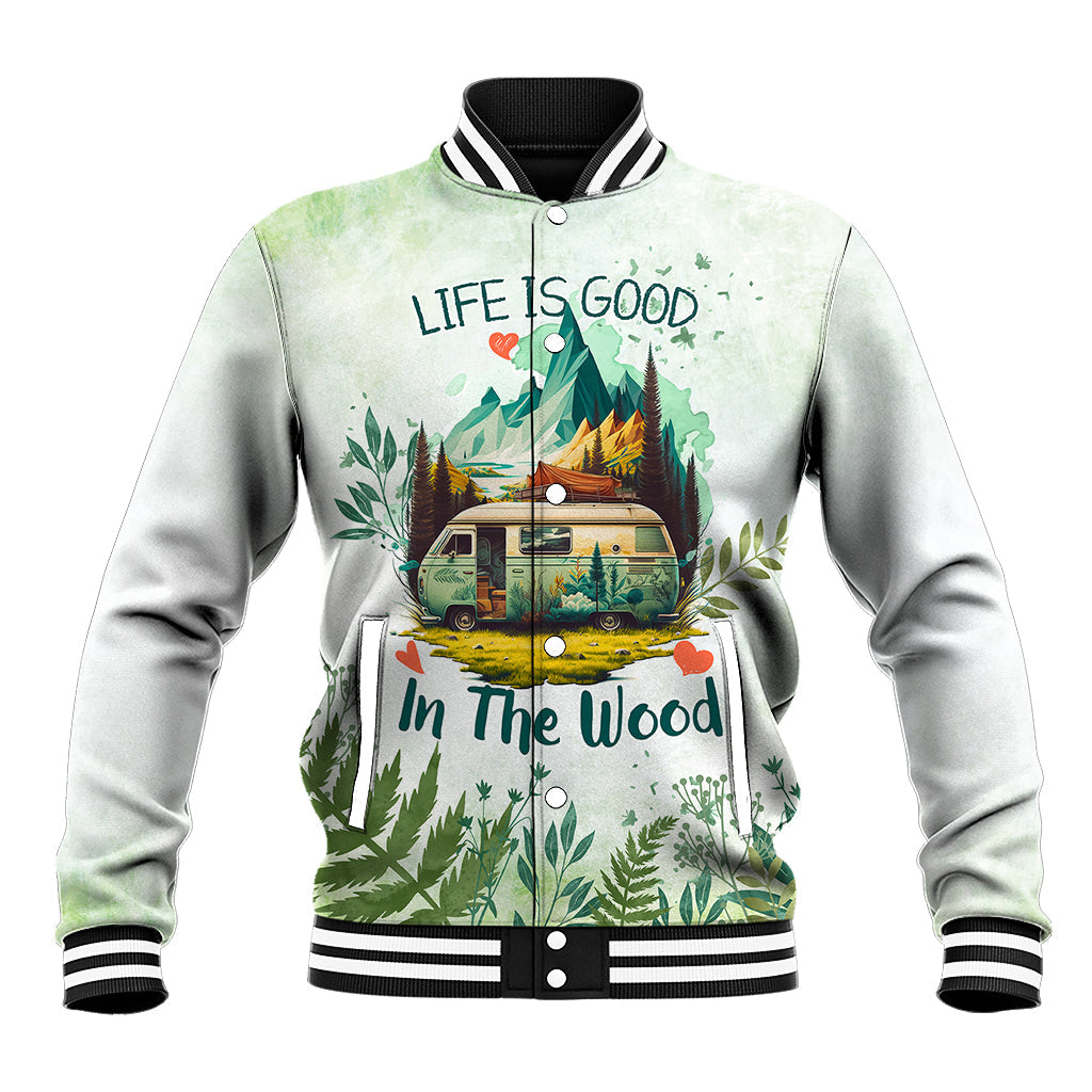 Life Is Good In The Wood Trailer Life Anime Varsity Baseball Jacket For Fans