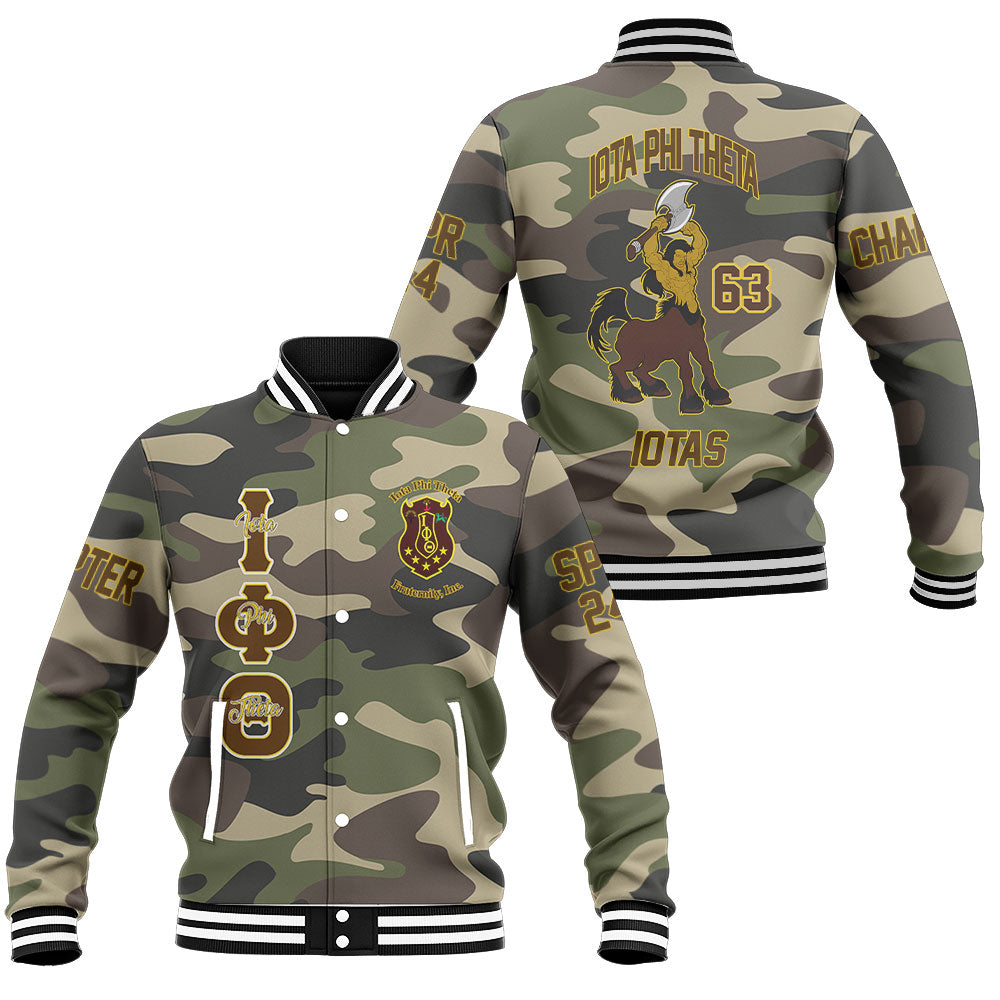 Personalized Iota Phi Theta Baseball Jackets Camouflage The Iota Centaur