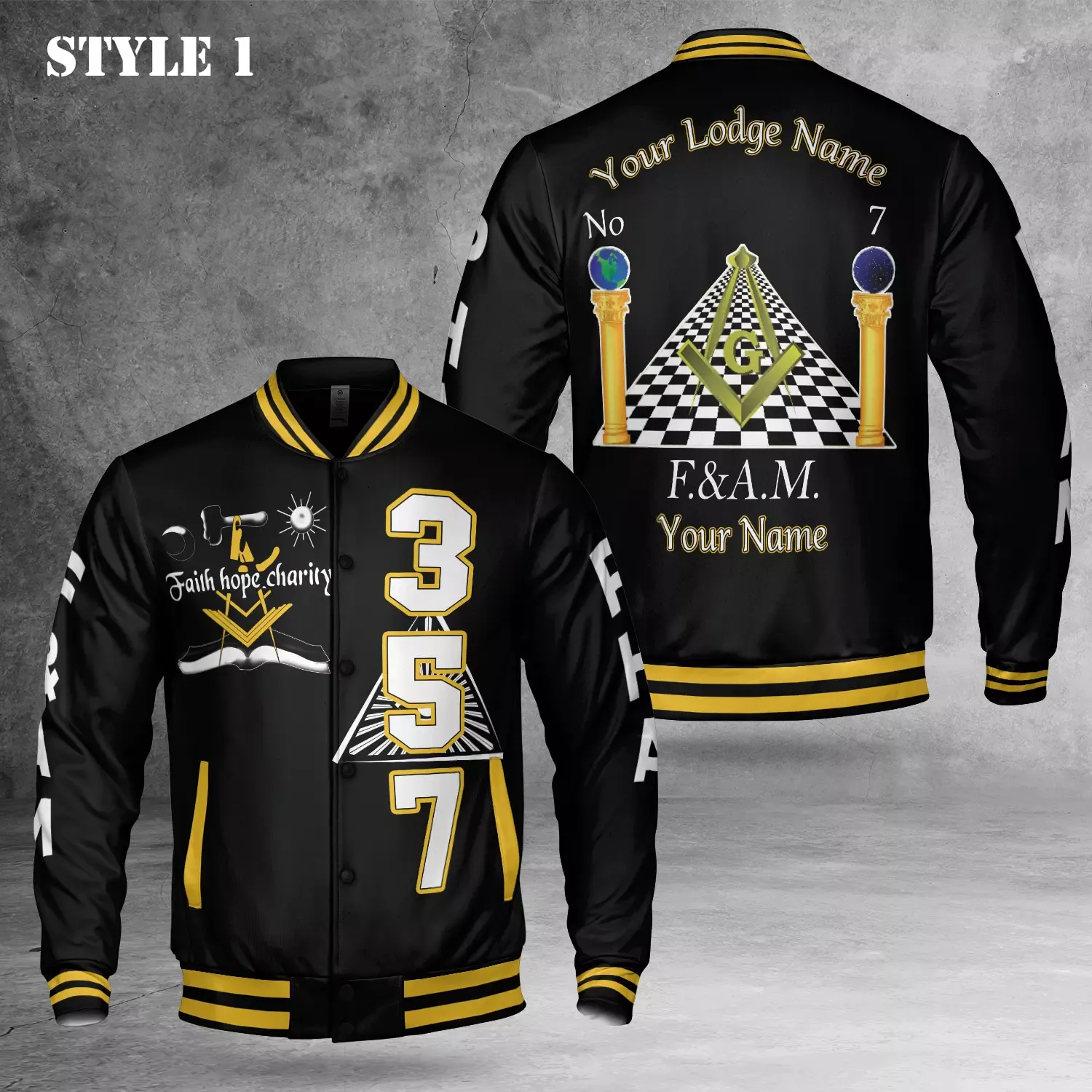 Personalized Mason Prince Hall Faith Hope Charity Baseball Jacket