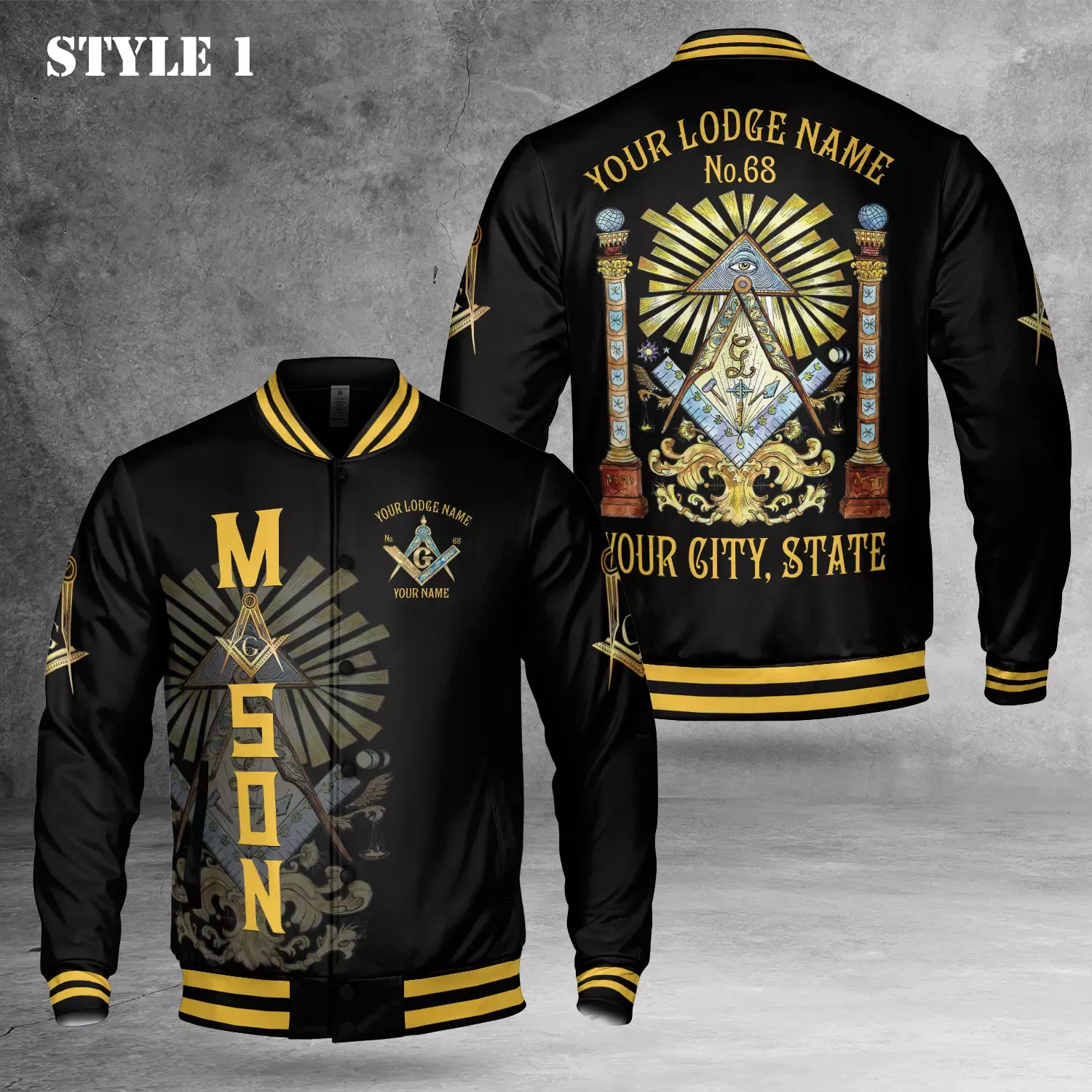 Personalized Lodge Name Number Mason Square Compass 3D Baseball Jacket