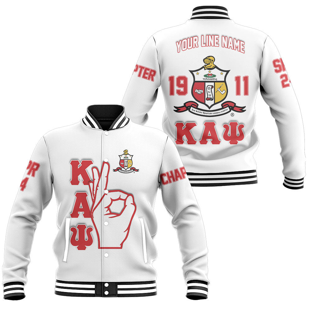 Personalized Kappa Alpha Psi Baseball Jackets White Handsign And Founded Year Style