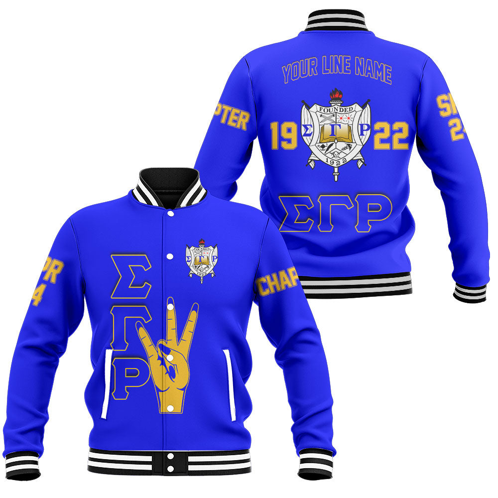 Personalized Sigma Gamma Rho Baseball Jackets Blue Handsign And Founded Year Style