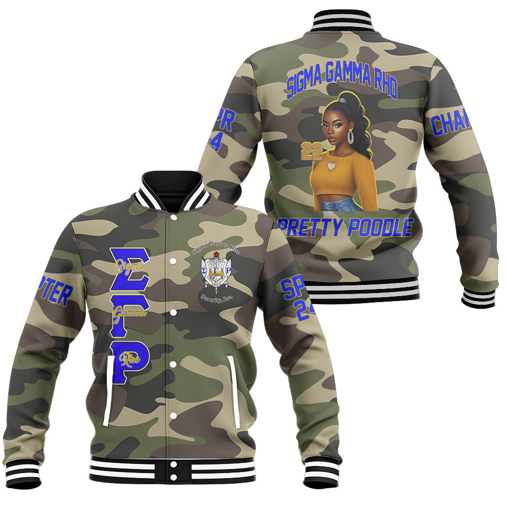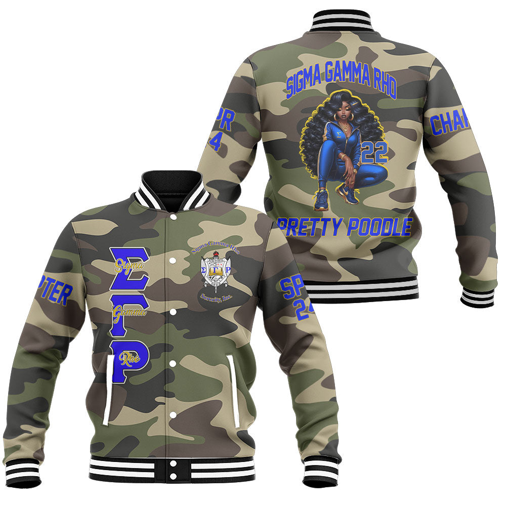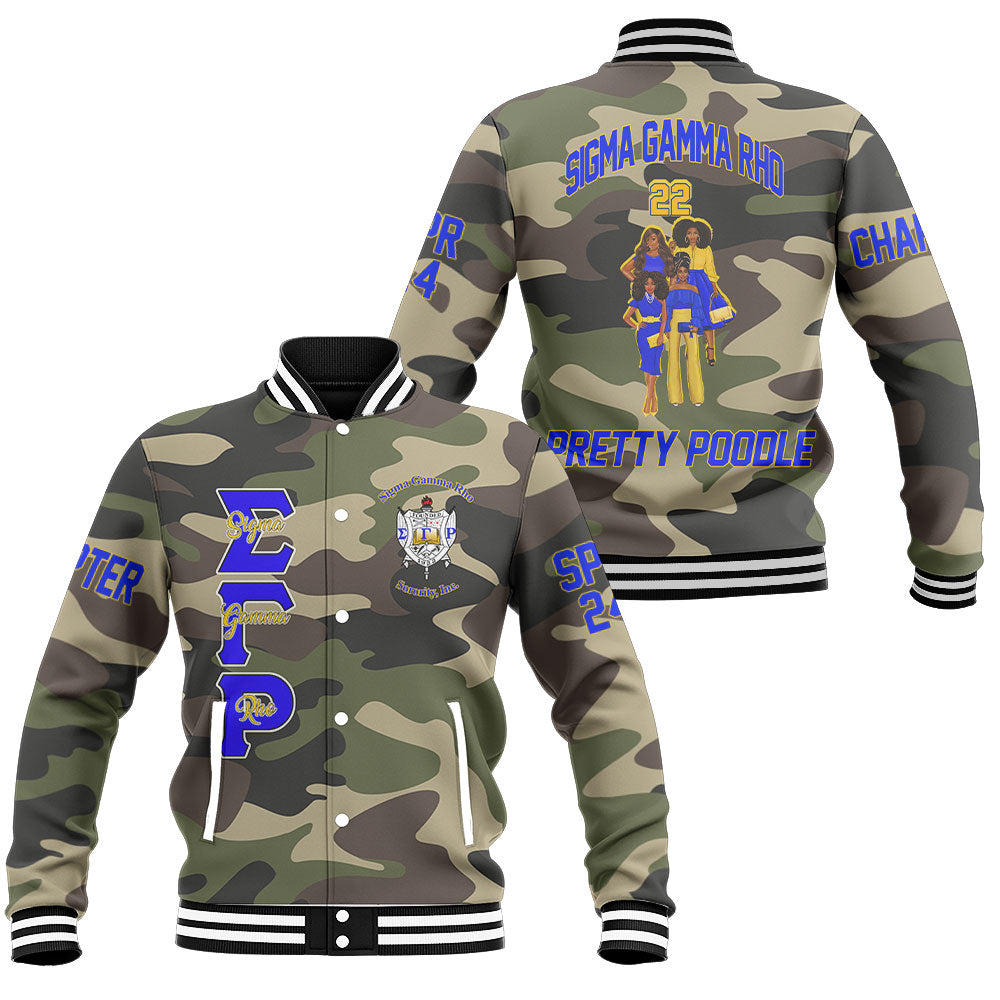 Personalized Sigma Gamma Rho Baseball Jackets Camouflage 1922 Sgrho Lady Style