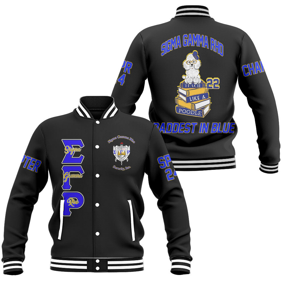 Personalized Sigma Gamma Rho Baseball Jackets Black The Cutest Poodles Style