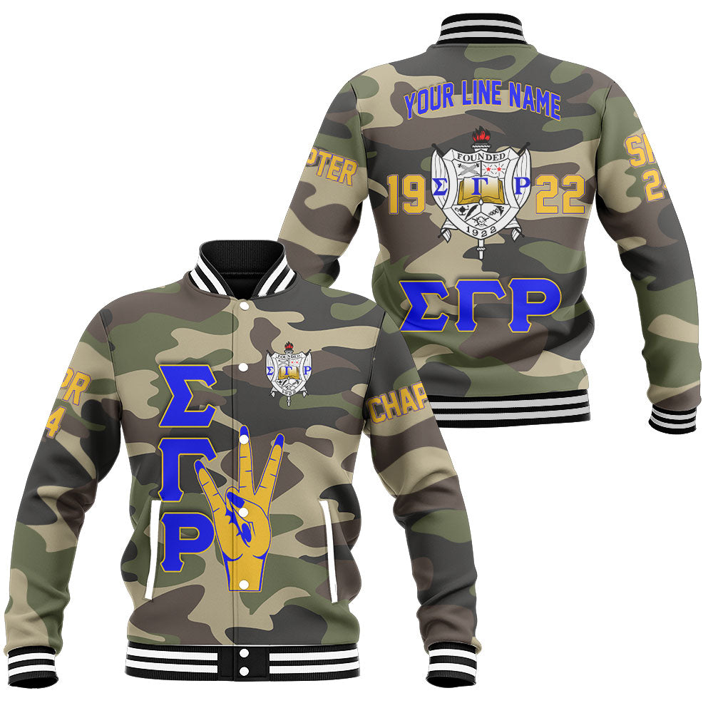 Personalized Sigma Gamma Rho Baseball Jackets Camouflage Sgrho Sorority Sister 1922 Style