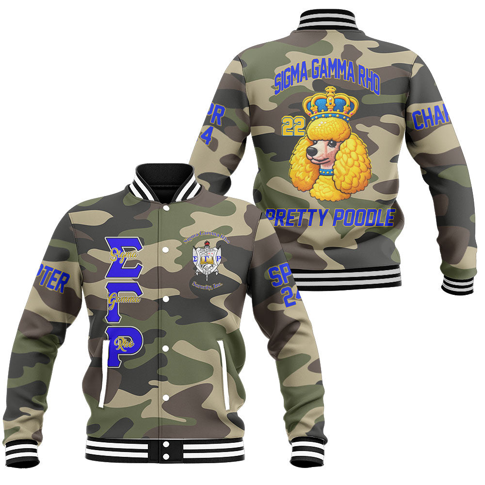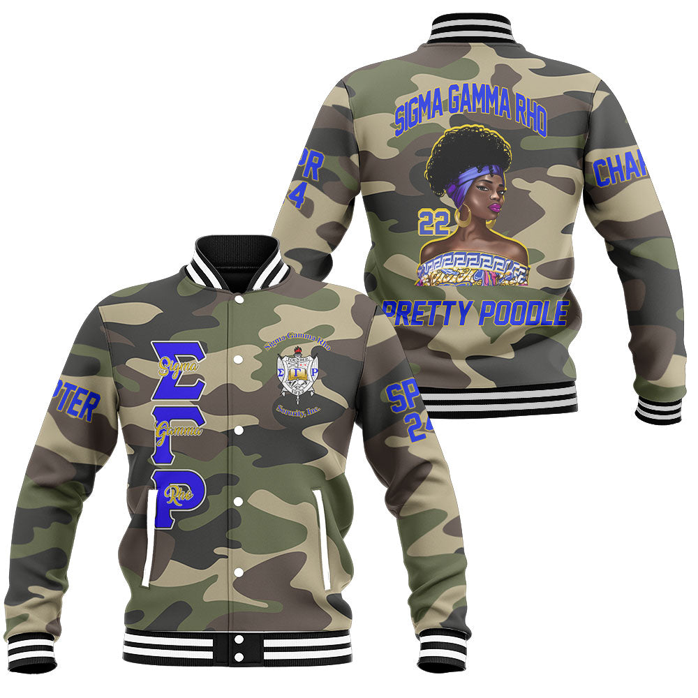 Personalized Sigma Gamma Rho Baseball Jackets Camouflage The Queen Sgrho Poodles Style