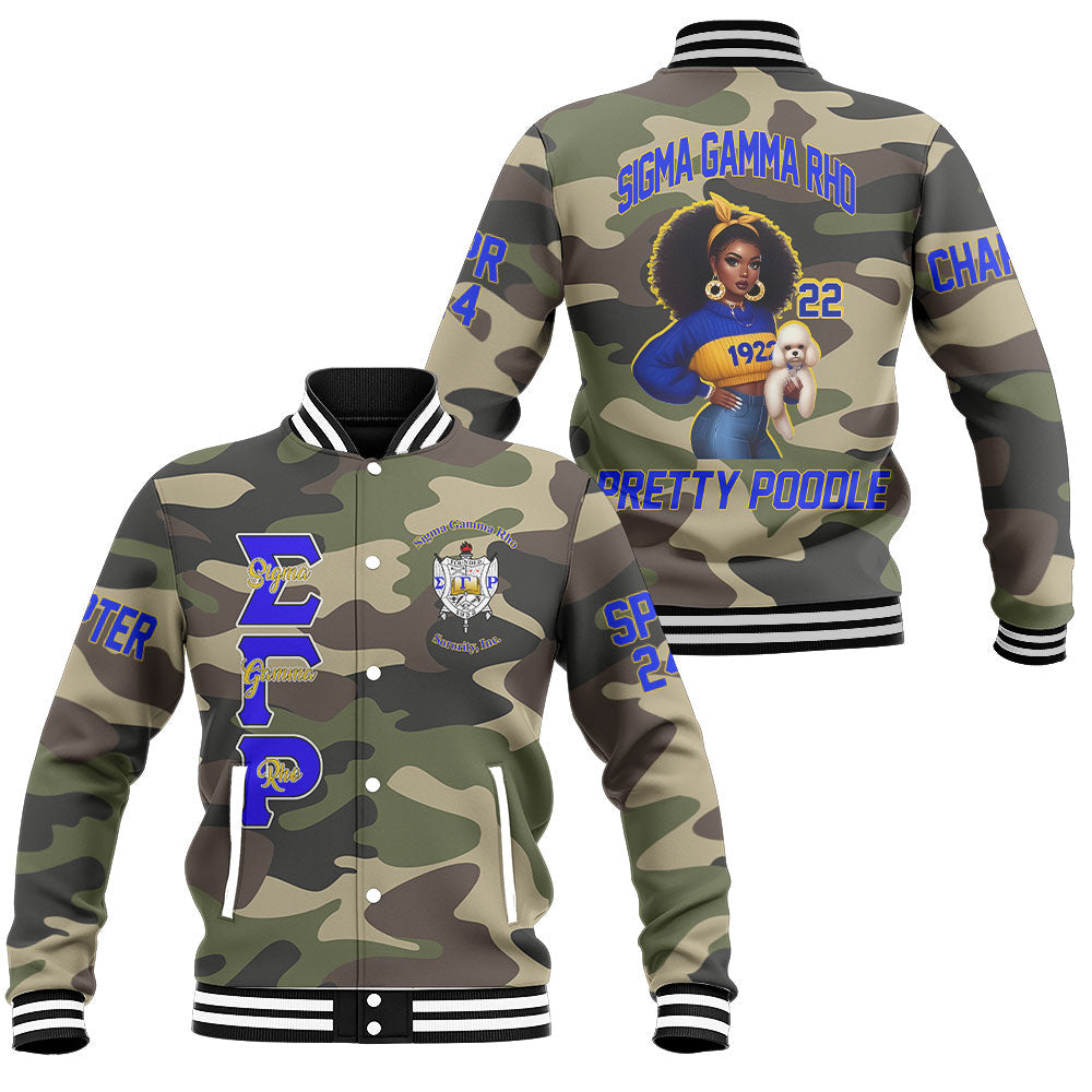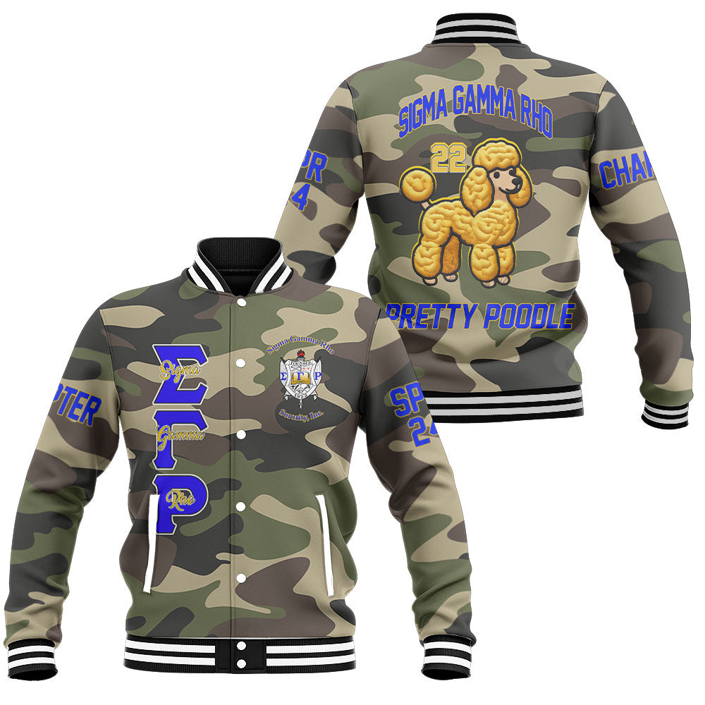 Personalized Sigma Gamma Rho Baseball Jackets Camouflage Sgrho Girl And Poodles Style