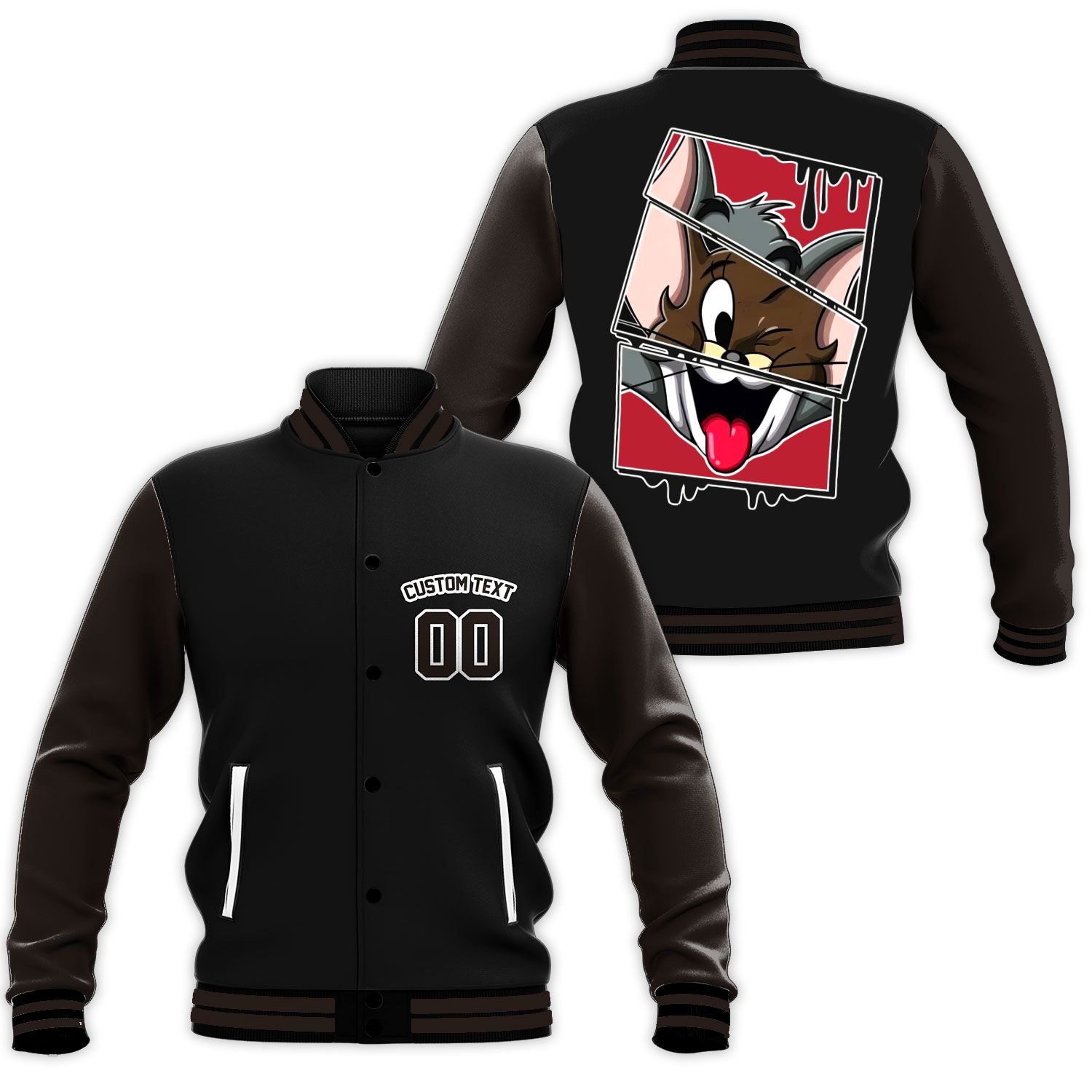 Custom Olive Casual Baseball Jacket Happy Cat And Mouse Baseball Jacket