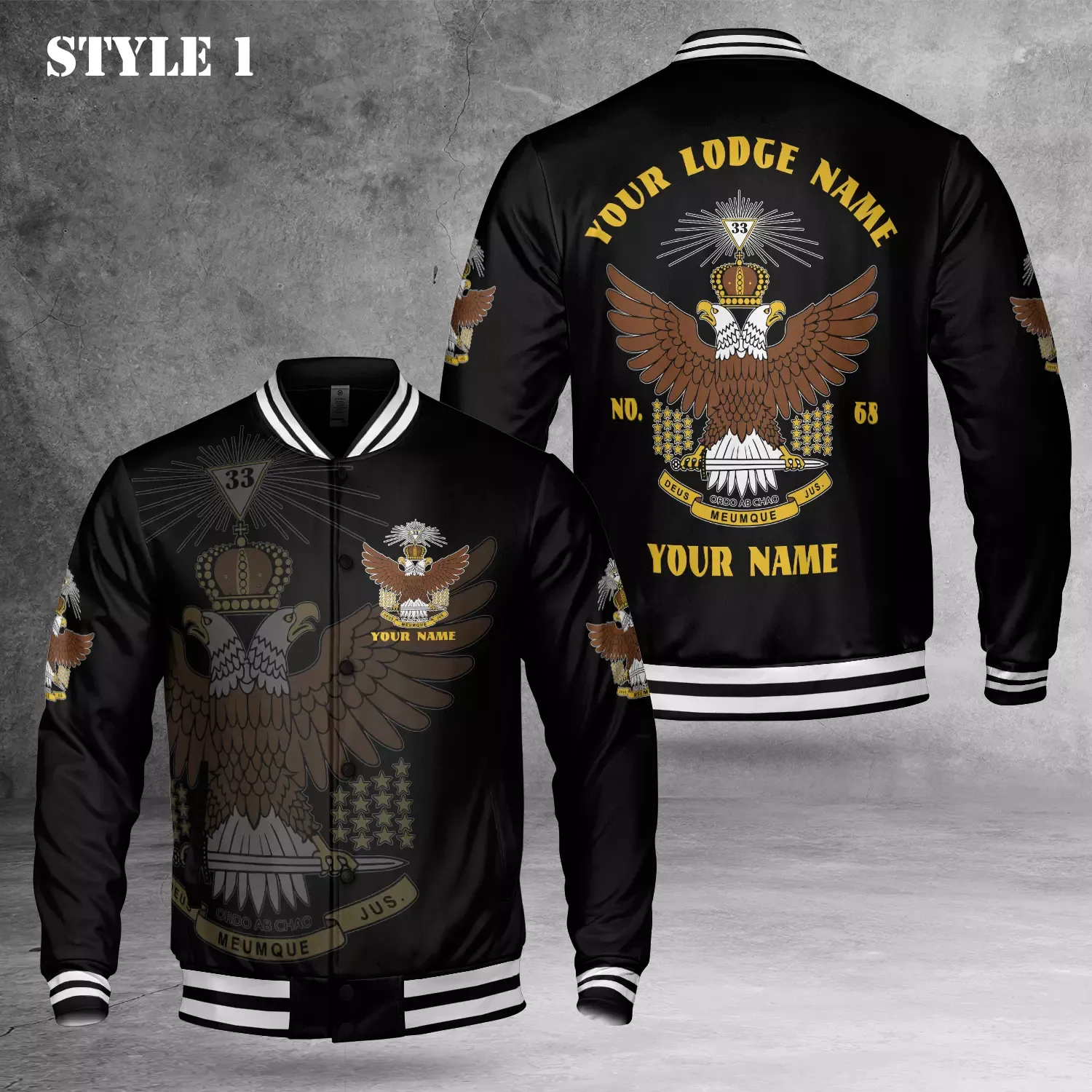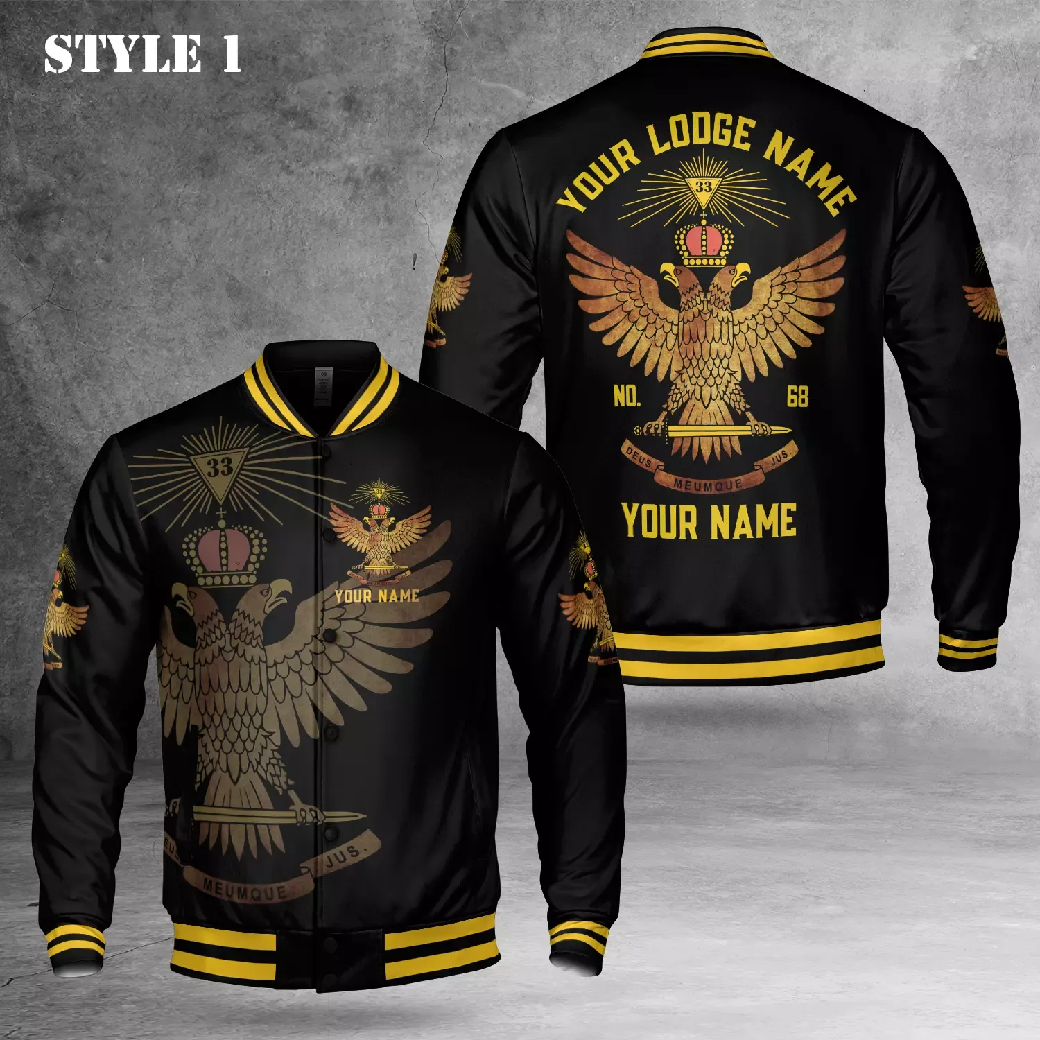 Custom Name Scottish Rite 33 Degree Eagle Wings Up Masonic Baseball Jacket