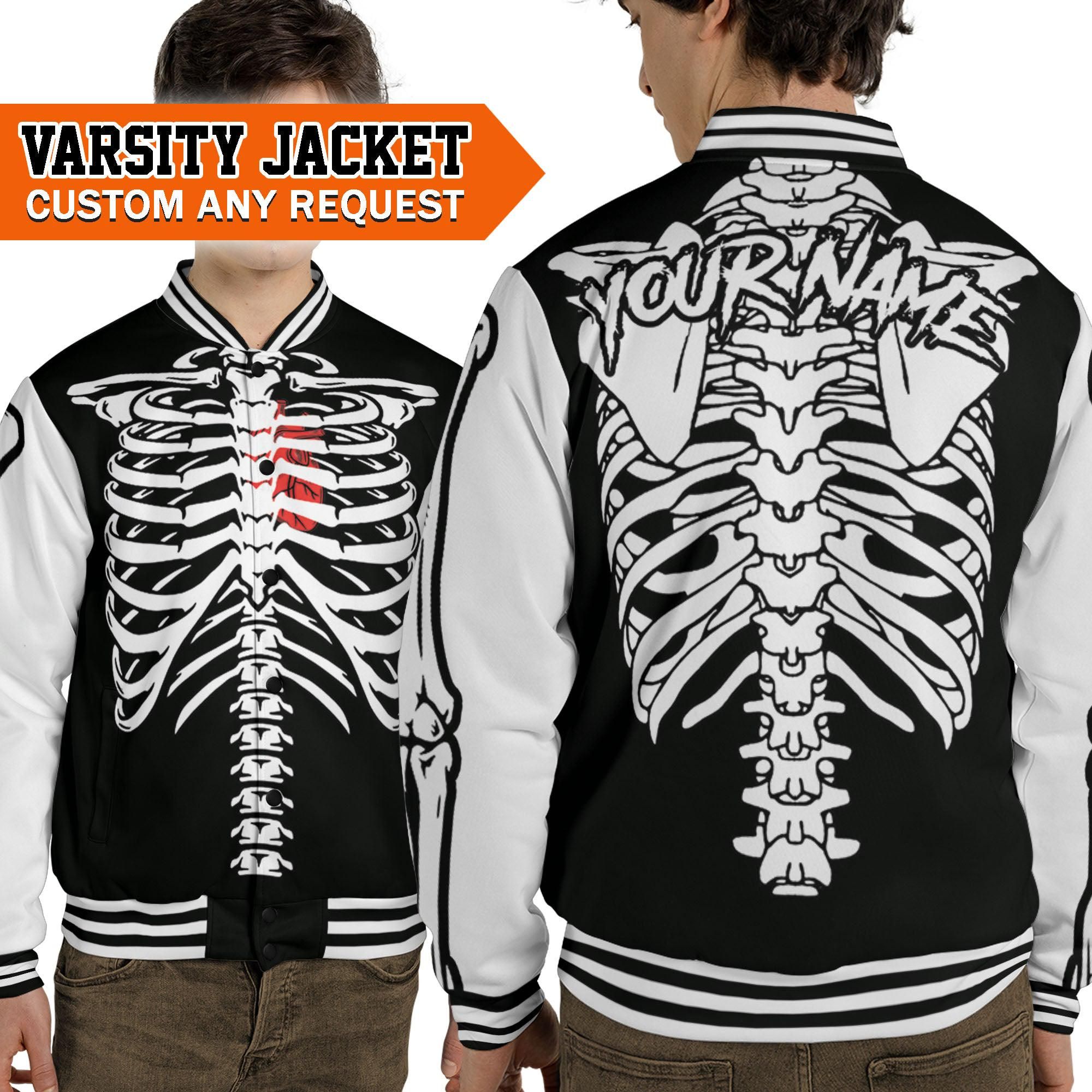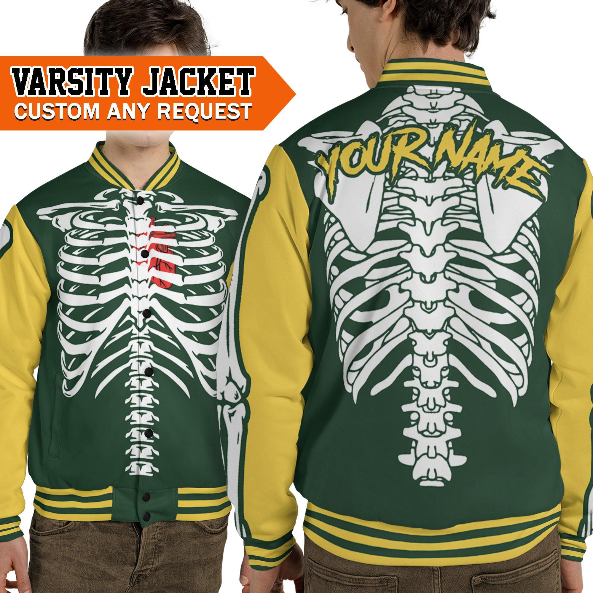 Skeleton Heart Halloween Green And Yellow Varsity Custom Name Jacket Skeleton Jacket Baseball Team