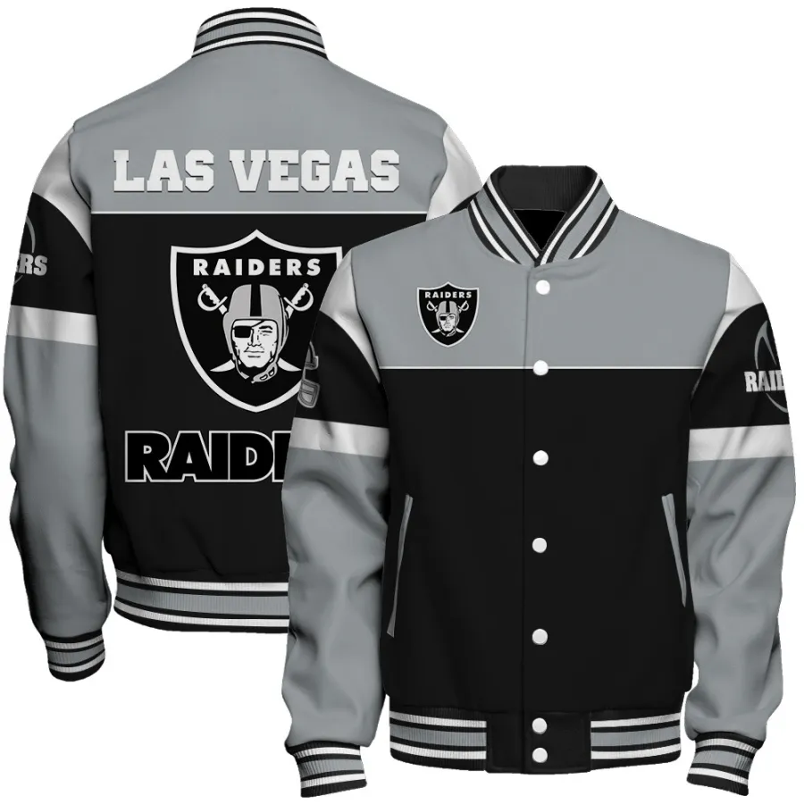 Las Vegas Raiders Silver Crew Baseball Jacket Premium Sport Fan Outerwear NFL