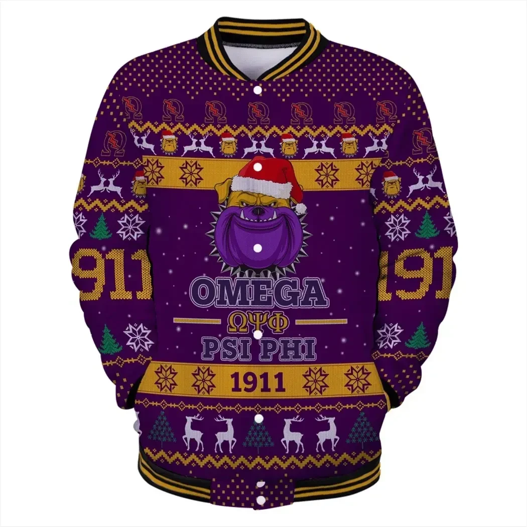Lux Omega Psi Phi Bulldog Greek Letter Christmas Baseball Jacket