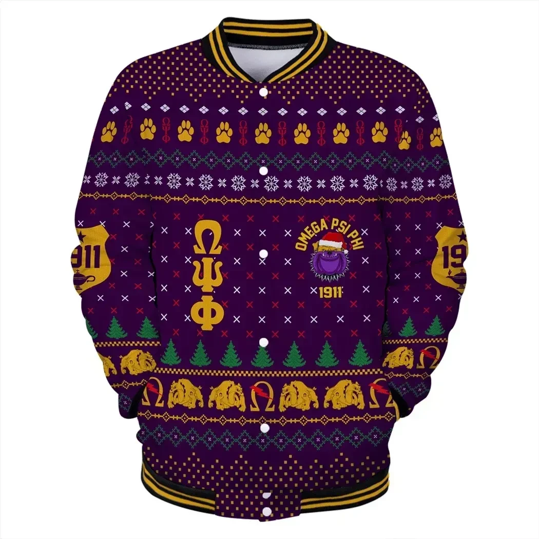 Lux Omega Psi Phi Greek Letter Christmas Baseball Jacket