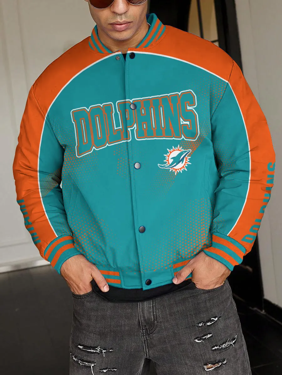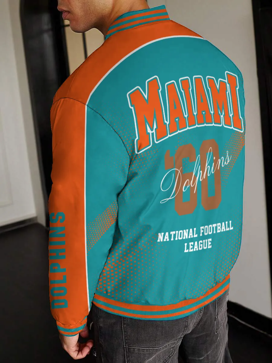 Miami Dolphins Game Day Fins Baseball Jacket Casual Sport Fan Outerwear NFL