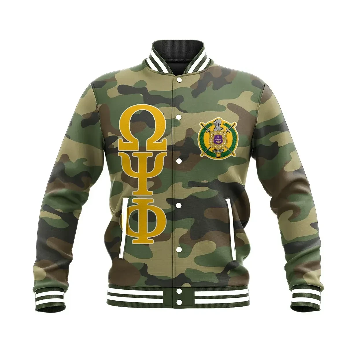 Military Thunder Bulldog Omega Psi Phi Baseball Button Jacket