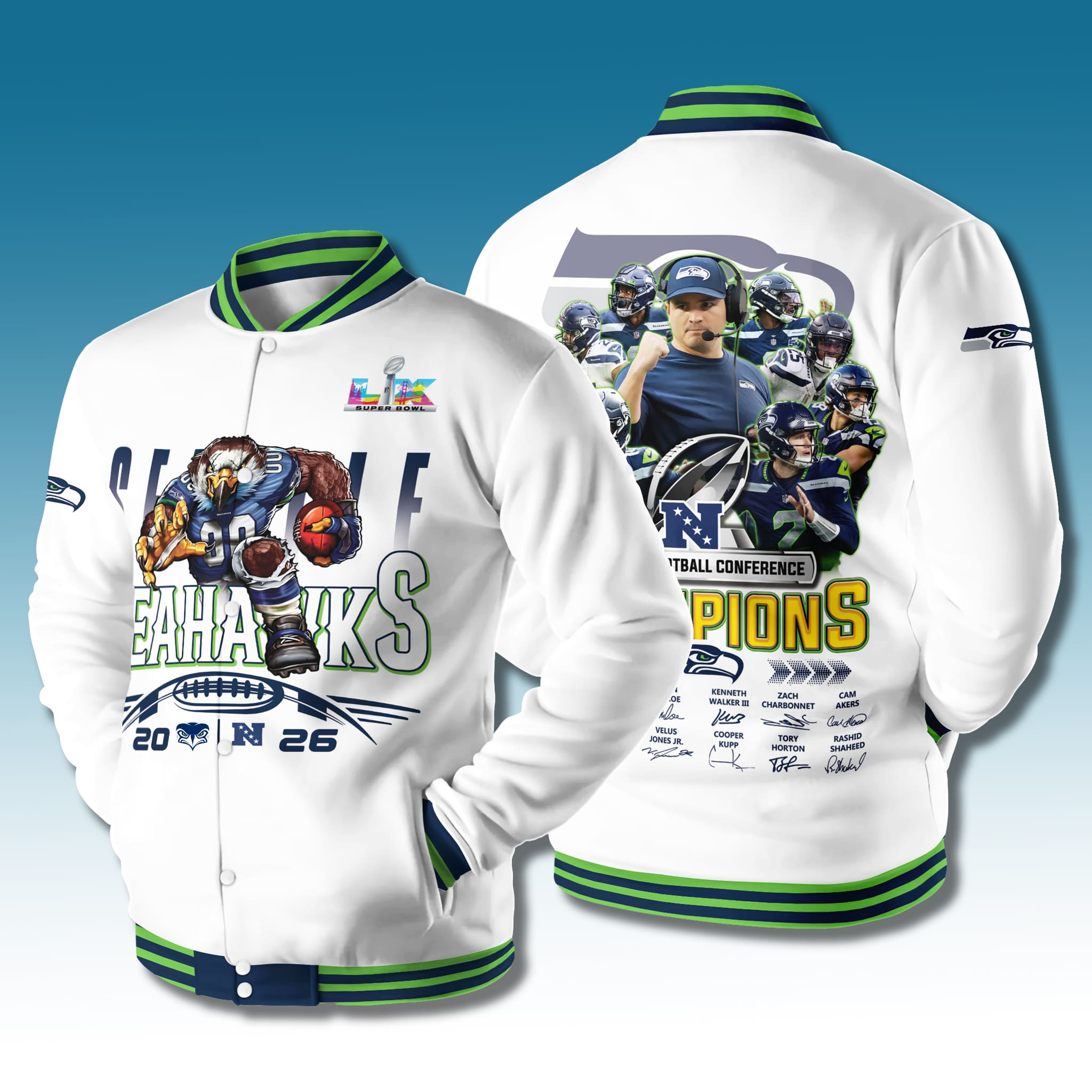 Seattle Seahawks Blue Talons Baseball Jacket Custom Varsity Fan Jacket NFL