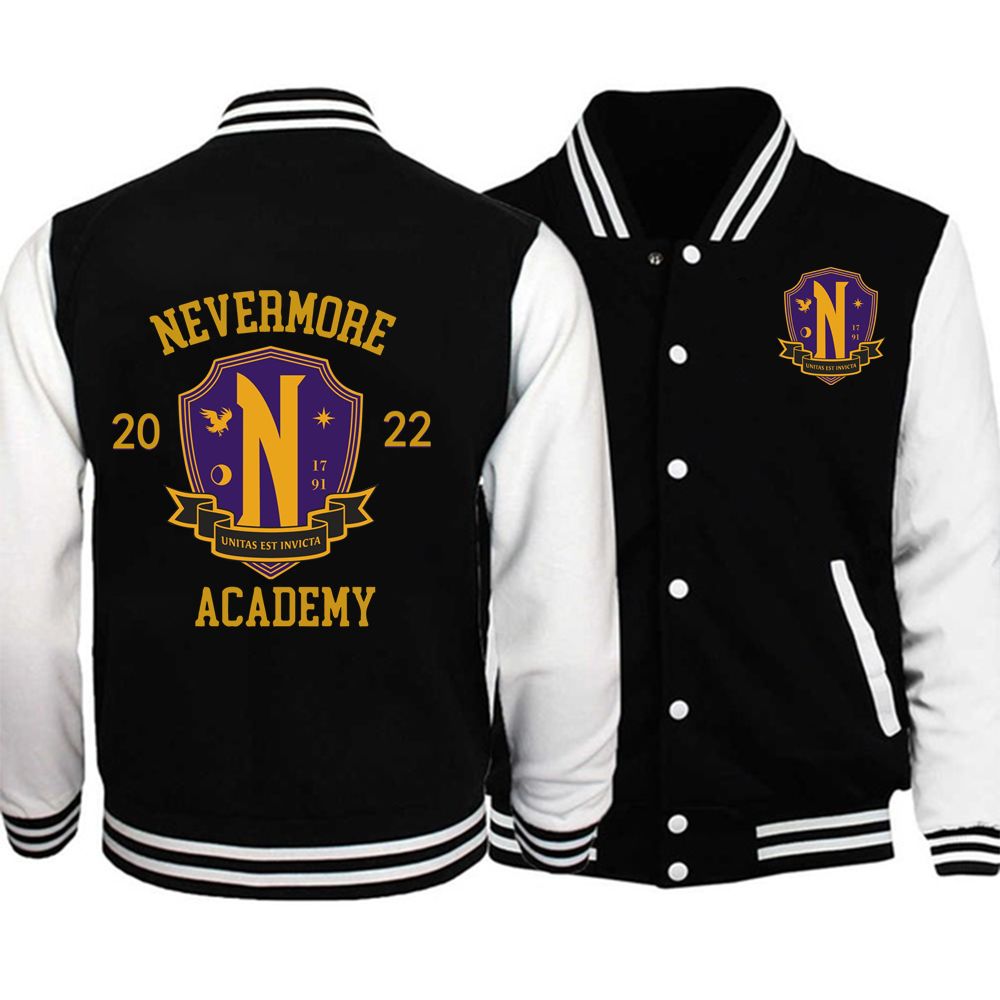 Wednesday Nevermore Academy Halloween Baseball Jacket