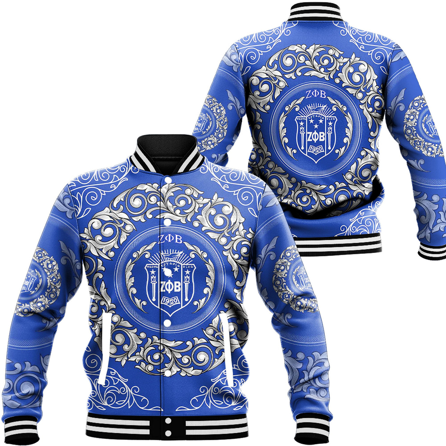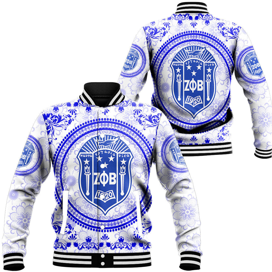 Zeta Phi Beta Floral And Greek Letter Pattern Baseball Jackets