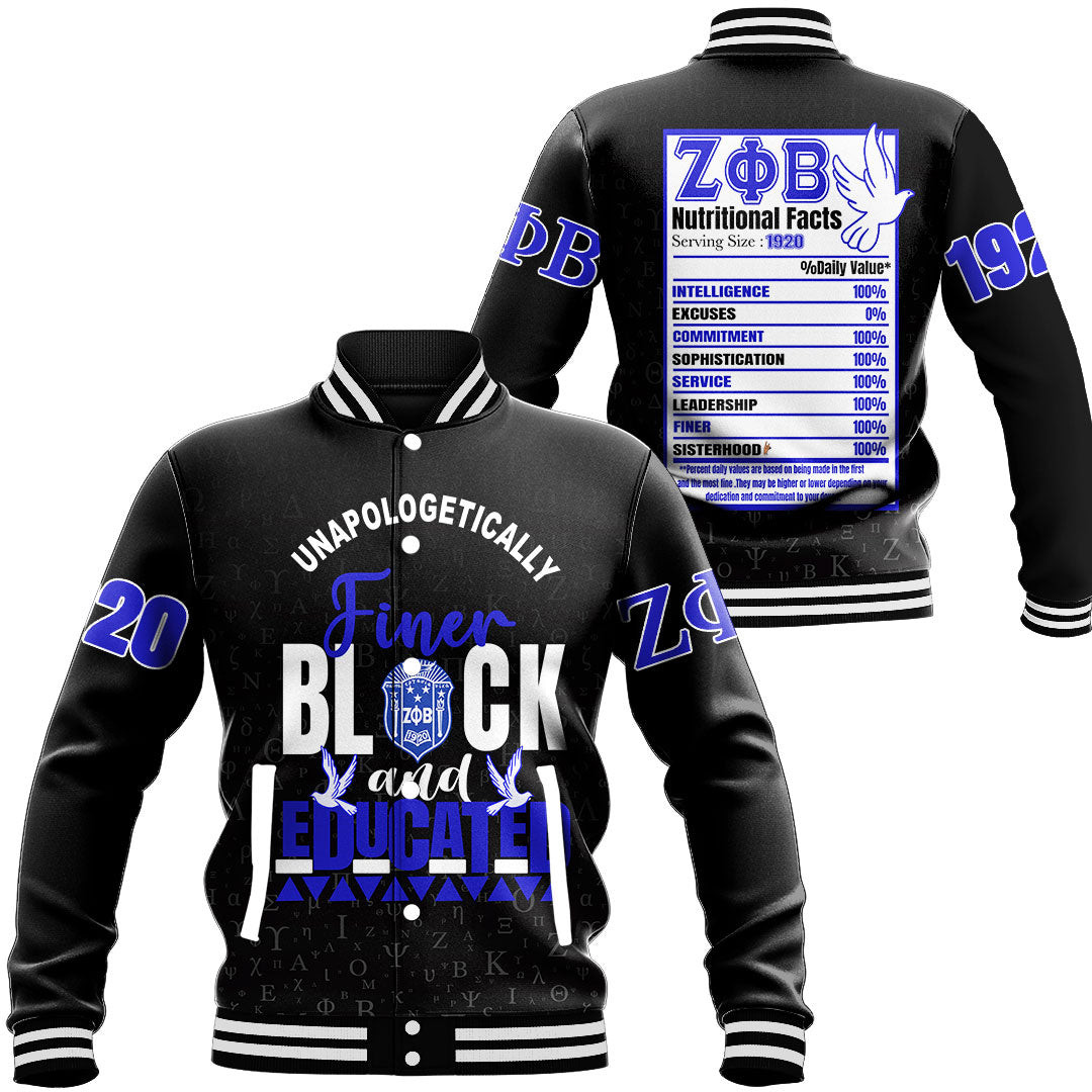 Zeta Phi Beta Nutrition Facts Juneteenth Baseball Jackets